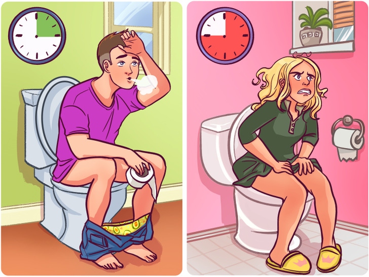 1. Phụ nữ có thể dành nhiều thời gian hơn cho việc đi vệ sinh