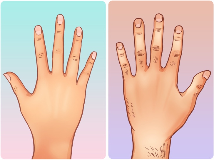 Khoa học nhận định, nếu bạn ở trường hợp thứ nhất, bạn là đàn ông. Còn nếu ở trường hợp thứ hai, thì khả năng cao bạn là phụ nữ. Họ nói rằng trước khi sinh, estrogen và testosterone là những thứ kiểm soát các gen, do đó, điều này sẽ quyết định chiều dài ngón tay của bạn.