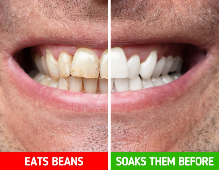 Việc thiếu canxi cũng có thể khiến răng trở nên yếu đi. Tuy nhiên, chúng ta cũng không cần tránh ăn đậu vì chúng khá tốt cho sức khỏe. Chỉ cần bạn ngâm chúng trong nước vài giờ trước khi nấu.