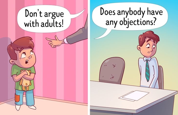 Những người trưởng thành từ điều đó thường ít có cơ hội tự bảo vệ mình, và họ có nhiều khả năng trở thành nạn nhân của những người không chung thủy. Họ cũng có thể thực hiện mọi yêu cầu của đối phương mà không đòi hỏi. Đó là lý do tại sao dạy con bạn cách nói “không” và bày tỏ ý kiến của mình là điều cần thiết.