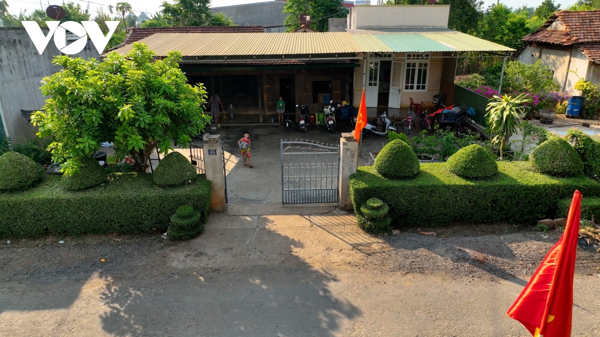 Rất nhiều gia đình ở Buôn Trấp là chứng nhân lịch sử, tham gia khẩn hoang một trong những vùng lúa quan trọng nhất Đắk Lắk. Trước cổng những gia đình này quanh năm cắm cờ Tổ quốc.(ảnh Chân Lê)