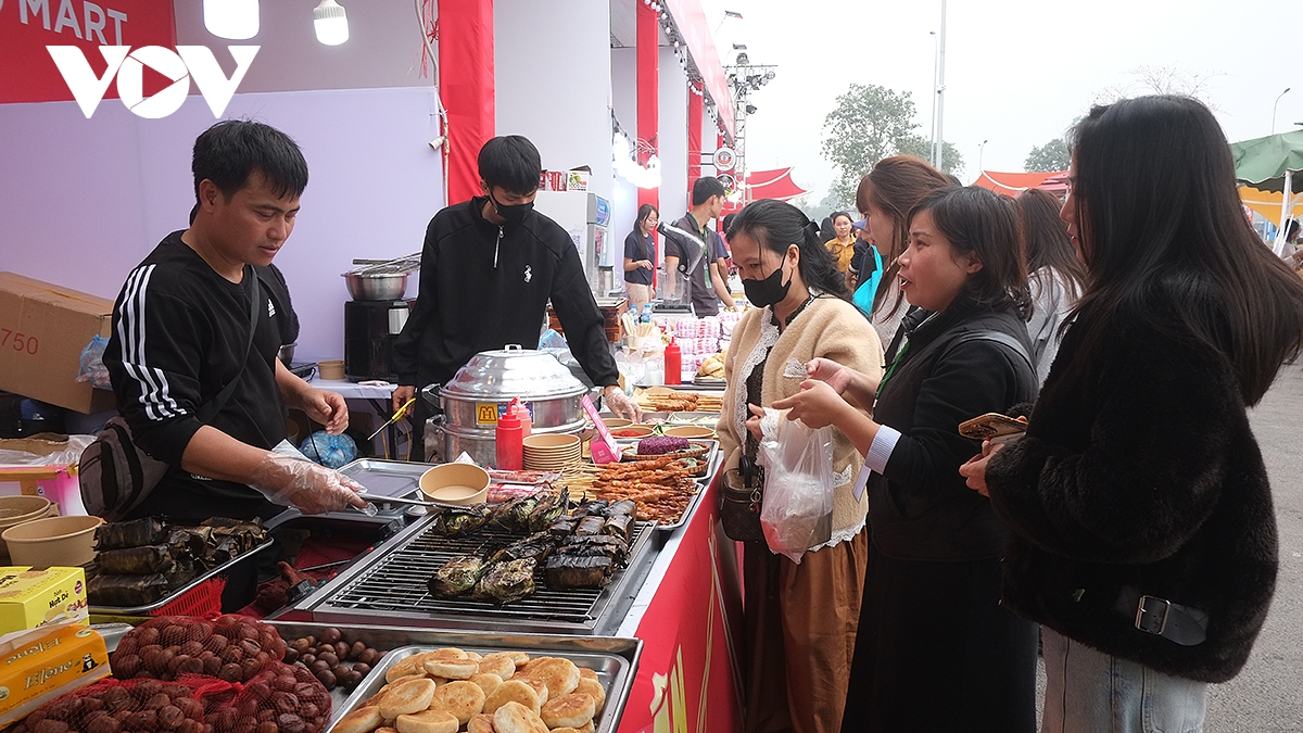Tại khu ẩm thực ngoài trời của Hội chợ Mùa Xuân 2026, các gian hàng ẩm thực vùng cao Tây Bắc cũng thu hút rất đông khách tới tham quan, thưởng thức.
