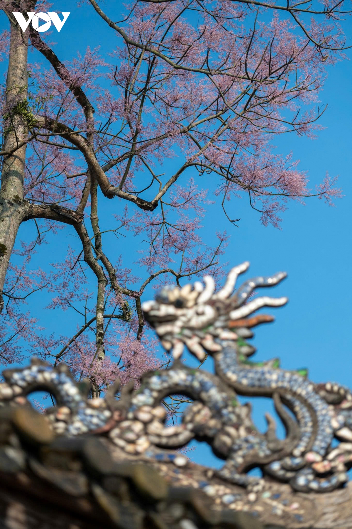 Sắc tím phớt đặc trưng của hoa ngô đồng không rực rỡ nhưng lại mang vẻ đẹp rất riêng, thanh nhã, trầm lắng và đầy chất Huế.