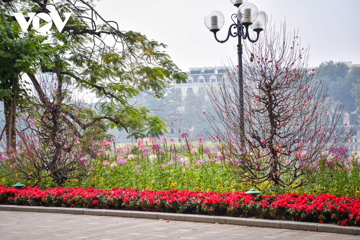 Nhiều loài hoa khoe sắc, tô điểm cho khung cảnh hồ Hoàn Kiếm ngày xuân.