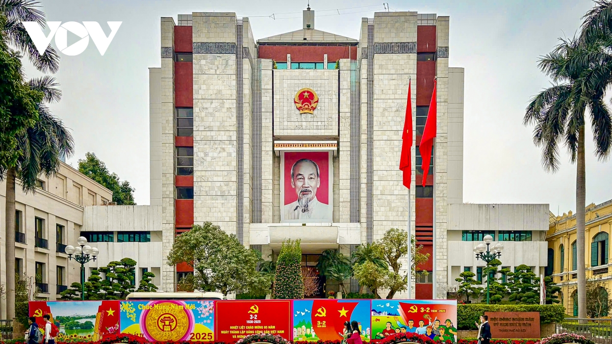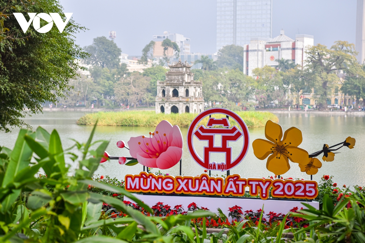 VOV.VN - Những ngày này, khắp các tuyến phố Hà Nội đã được trang hoàng rực rỡ chào mừng năm mới 2025, Tết Nguyên đán Ất Tỵ cũng như kỷ niệm các ngày lễ lớn của dân tộc.
