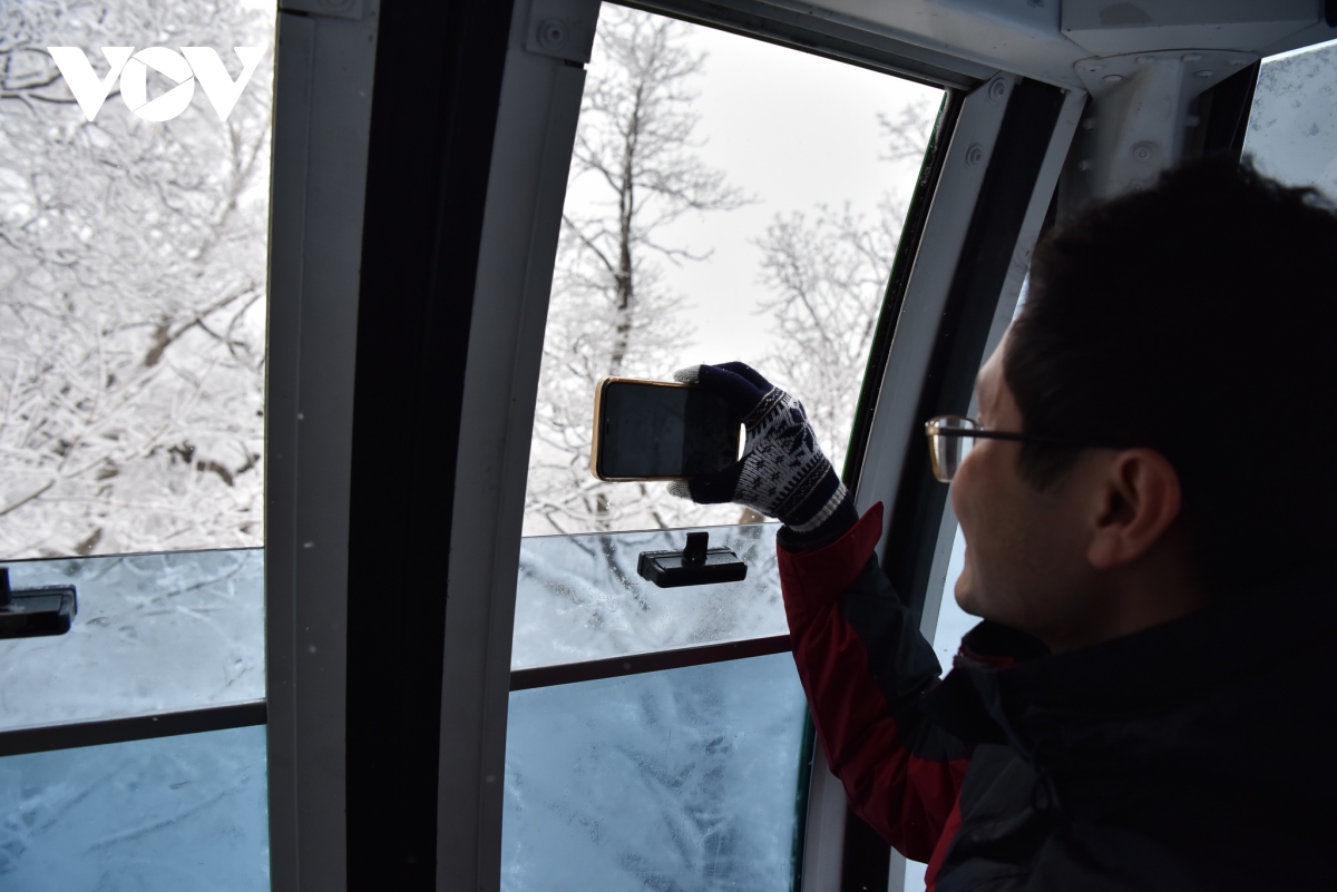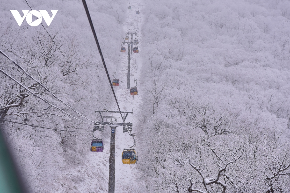 Từ cabin cáp treo, cảnh tuyết phủ khắp cây cối và núi đồi hiện ra ngay trước mắt du khách, tưởng như chỉ vươn tay ra là chạm đến.