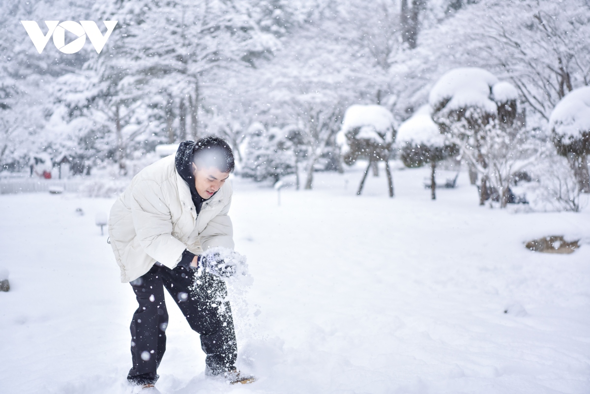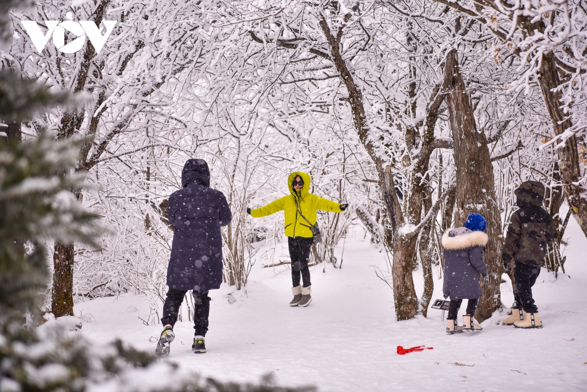 Du khách mê mẩn trước khung cảnh tuyết trắng xóa ngút tầm mắt.