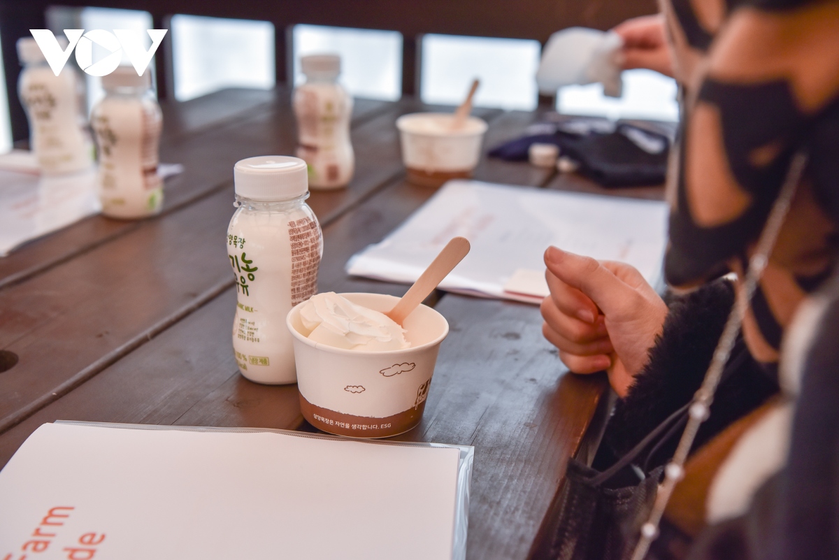 Thưởng thức kem giữa mùa đông tuyết rơi là trải nghiệm vô cùng đáng nhớ. Những sản phẩm làm từ sữa bò theo quy trình chăn nuôi hữu cơ là đặc sản của nông trại Samyang.