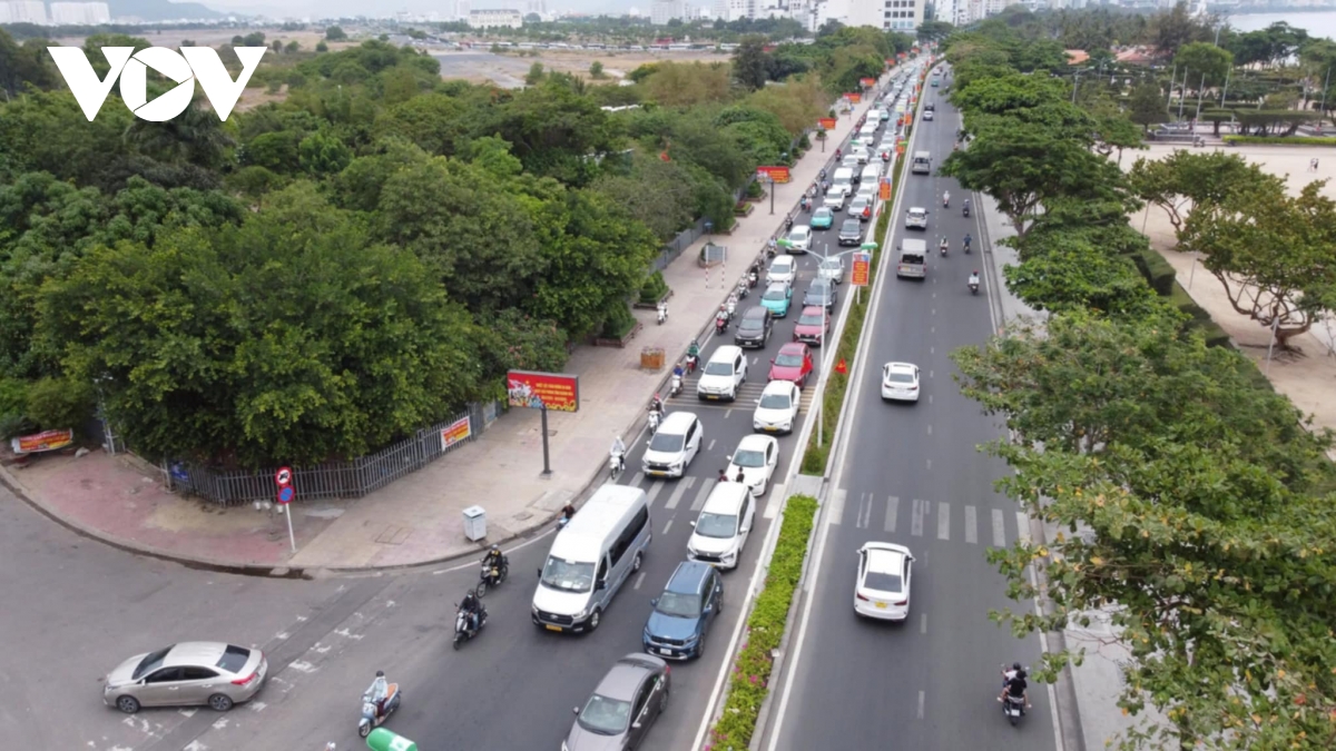 Xe ô tô nối nhau trên đường Trần Phú, thành phố Nha Trang