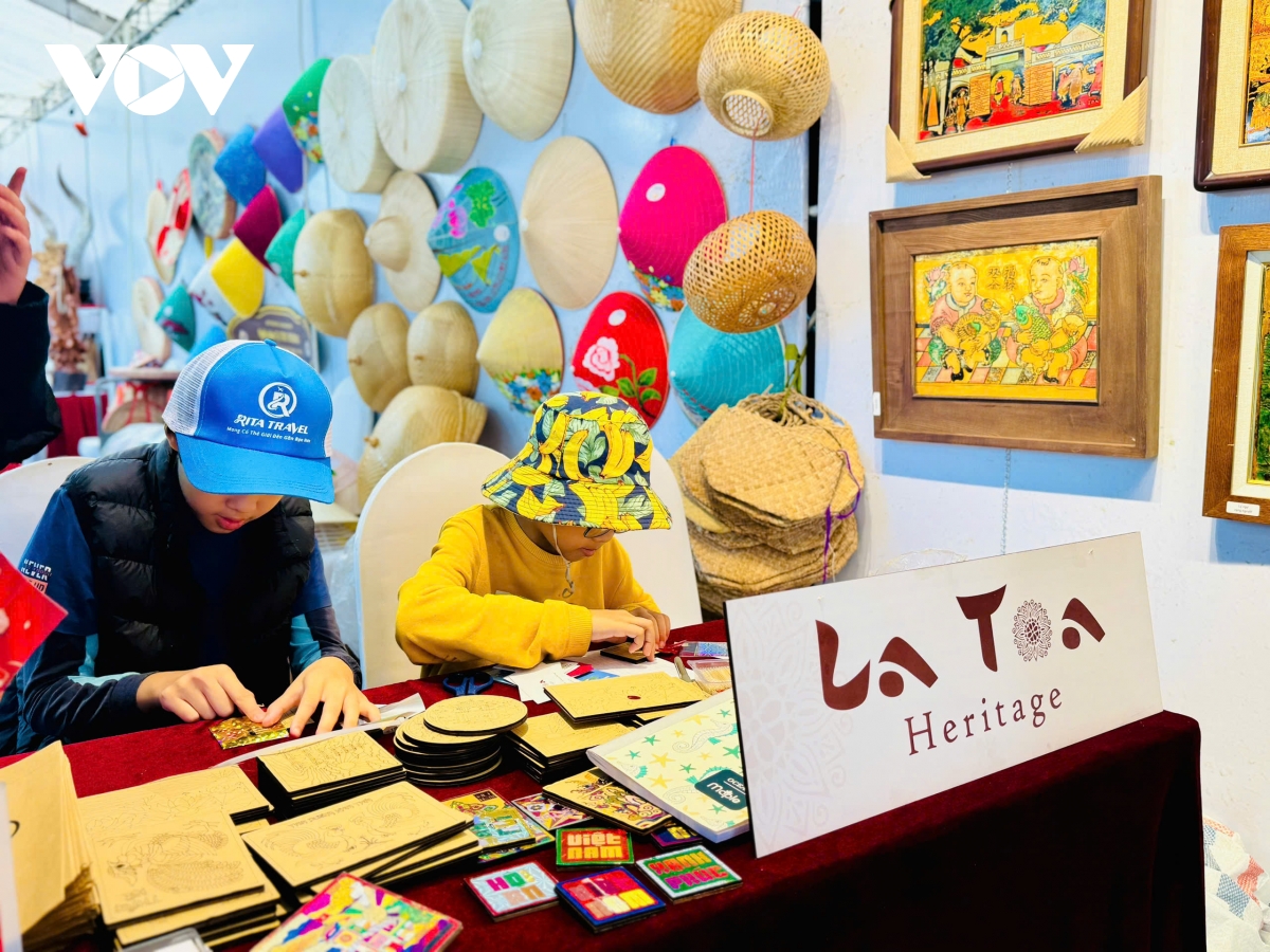 Các em nhỏ thử làm tranh thếp lá kim loại tại Festival Thu Hà Nội 2025