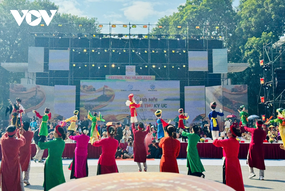 Đáng chú ý trong Festival Thu Hà Nội 2025, hoạt động đồng diễn nghệ thuật “Hà Nội - Miền ký ức” vào sáng ngày 23/11 tại phố đi bộ Trần Nhân Tông đã để lại ấn tượng sâu sắc với người xem. Các tiết mục trình diễn có sự tham gia của nhiều câu lạc bộ, đội văn nghệ địa phương như: Múa lân sư rồng Thanh Oai, múa rối cạn Tế Tiêu, múa hát chèo tàu Đan Phượng, nhóm múa sinh viên Trường Đại học Văn hoá Hà Nội, hát trống quân Thường Tín, cồng chiêng Phú Cát... tạo nên bầu không khí phấn khởi và lan tỏa tại không gian phố đi bộ.
