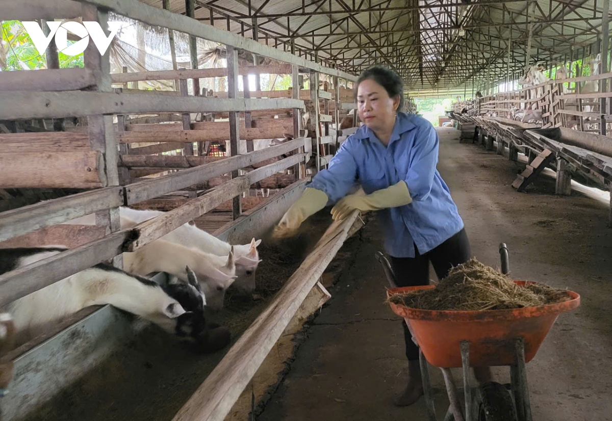 Chị Đặng Thị Ngọc Đào tại trang trại dê