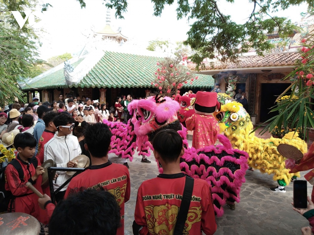 Hoạt động múa Lân Sư Rồng tại chùa Cổ Thạch, huyện Tuy Phong, tỉnh Bình Thuận