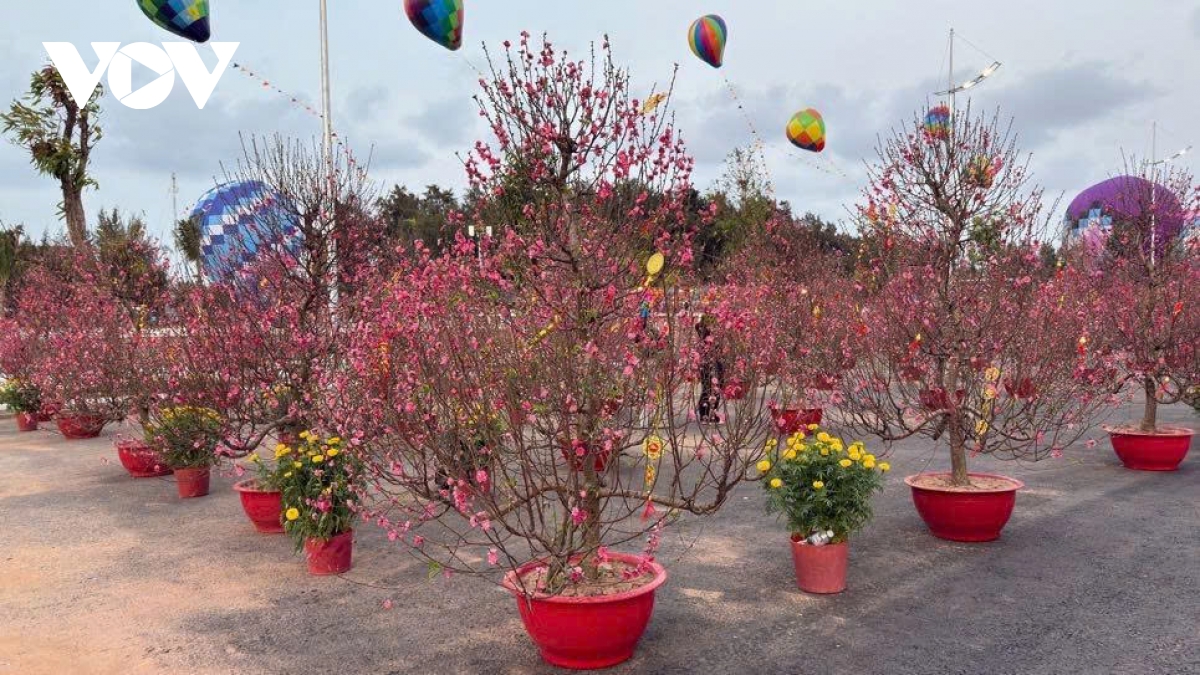 Sắc hồng của đào và sắc vàng của mai hòa quyện, không chỉ làm bừng sáng không gian lễ hội mà còn truyền tải thông điệp về sự sum vầy, đoàn kết - giá trị cốt lõi của Tết cổ truyền Việt Nam.