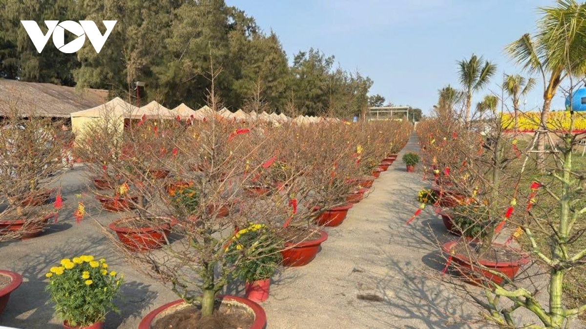 Không gian lễ hội hoa xuân tại Vinhomes Green Paradise gây ấn tượng với 300 gốc đào từ miền Bắc và 300 gốc mai vàng miền Nam, tạo nên bức tranh Tết hài hòa, đậm đà bản sắc dân tộc.