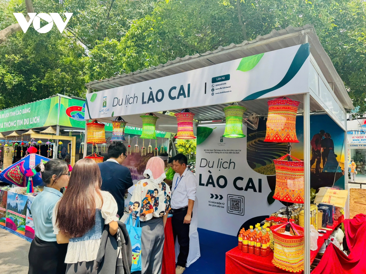 Điểm nhấn thu hút khách tham quan là các hoạt động trình diễn văn hóa nghệ thuật truyền thống vô cùng sống động như thổi sáo, múa khèn, múa gậy sinh tiền được tổ chức liên tục vào các khung giờ sáng, chiều, tối. Du khách còn có cơ hội chiêm ngưỡng tận mắt sự khéo léo của nghệ nhân trình diễn quy trình vẽ sáp ong và thêu thổ cẩm thủ công ngay tại gian hàng. Dịp này, Lào Cai mang đến các sản phẩm OCOP thế mạnh như thổ cẩm, cao atiso, chè... giới thiệu các sản phẩm, khu điểm, dịch vụ du lịch kết hợp các chương trình khuyến mại, giảm giá hấp dẫn và tổ chức mini game nhằm giới thiệu trọn vẹn sức hấp dẫn của Lào Cai đến du khách thập phương.
