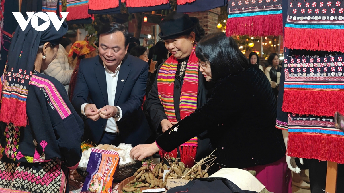 Bà Tòng Thị Phóng, nguyên Ủy viên Bộ chính trị, nguyên Phó Chủ tịch Thường trực Quốc hội dự lễ khai trương, tham quan các gian hàng.
