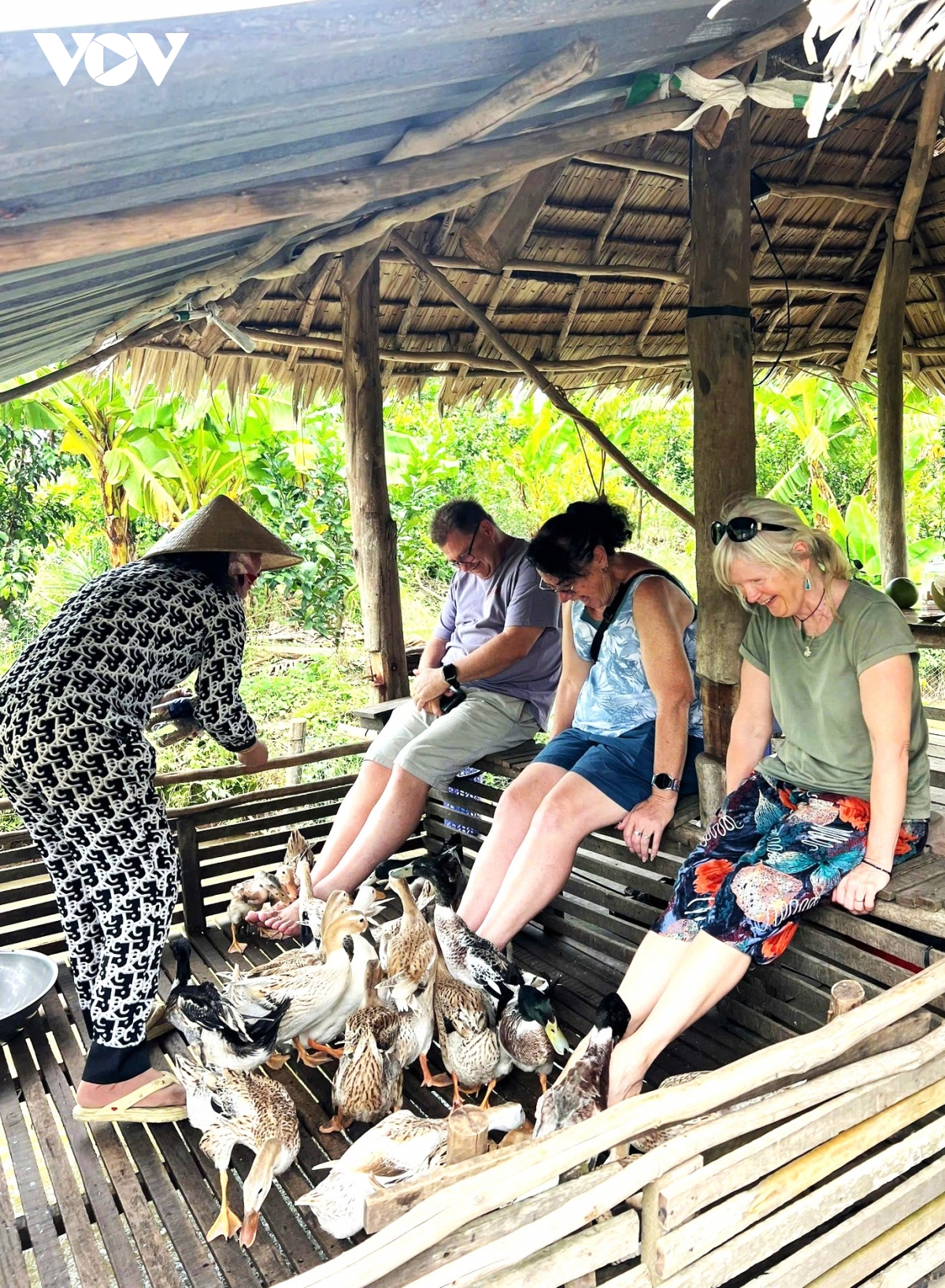 Anh Nguyễn Đức Thành - du khách từ tỉnh Khánh Hoà hào hứng chia sẻ: "Tự trải nghiệm từ sáng đến giờ thì tôi đã đi quanh vườn, hái trái cây, chèo thuyền... và thưởng thức các món ăn như cá tai tượng chiên xù, gỏi, tôm, bánh miệt vườn".