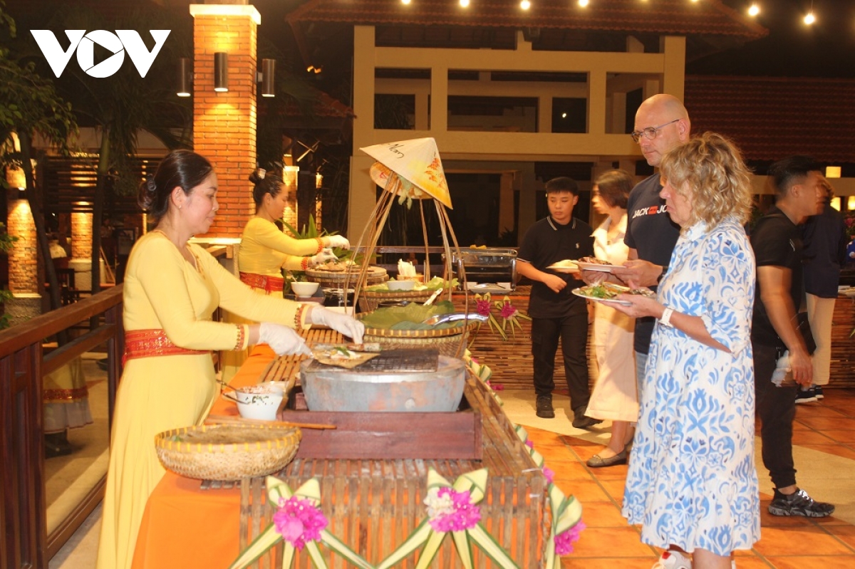 VOV.VN - Chương trình trải nghiệm văn hoá Chăm tại TP. Phan Thiết đang diễn ra tại khu du lịch Mũi Né từ ngày 2/11 đến 15/12, nhằm đáp ứng nhu cầu nghiên cứu, tham quan, thưởng ngoạn của du khách trong và ngoài nước khi đến Bình Thuận. Ngoài triển lãm hiện vật, biểu diễn nghệ thuật làm gốm, dệt thổ cẩm còn có bữa tiệc Buffet Chăm đầy sắc màu và hương vị, thu hút khá đông du khách.