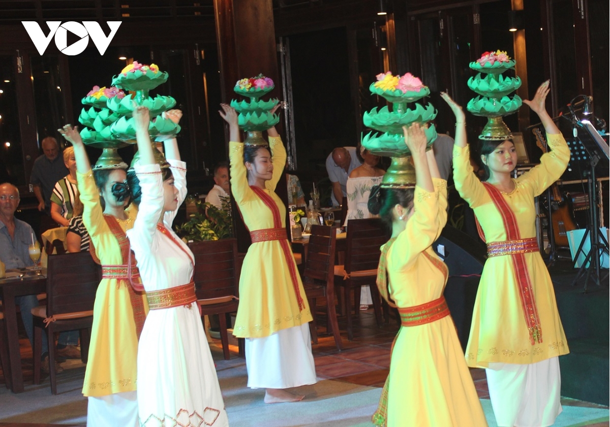 Tiết mục múa Chăm phục vụ du khách tại bữa tiệc Buffet Chăm