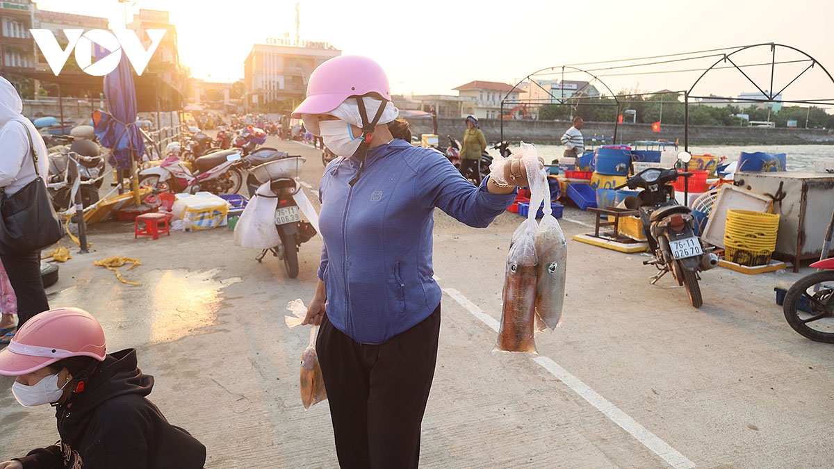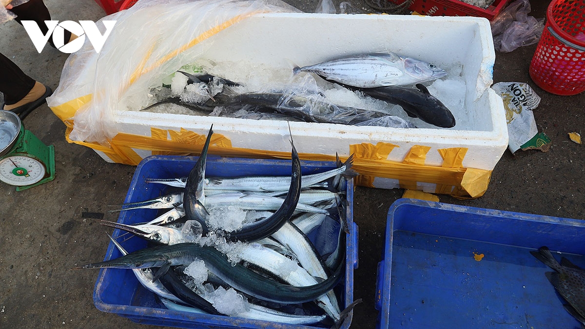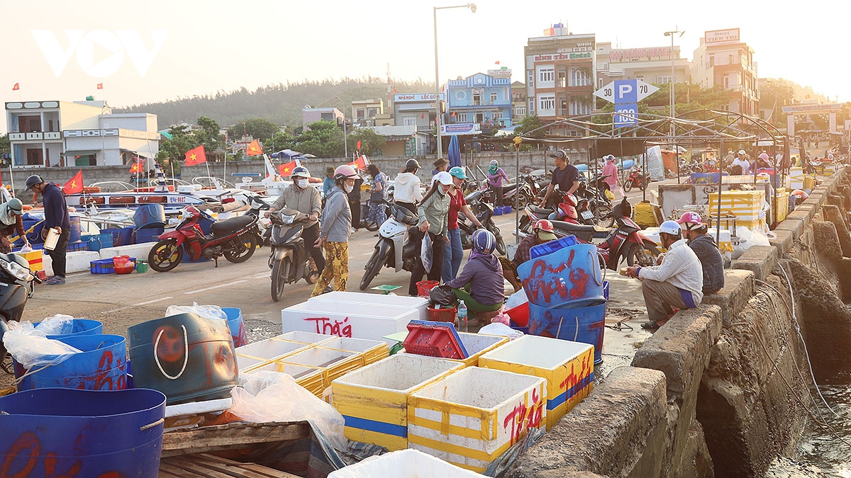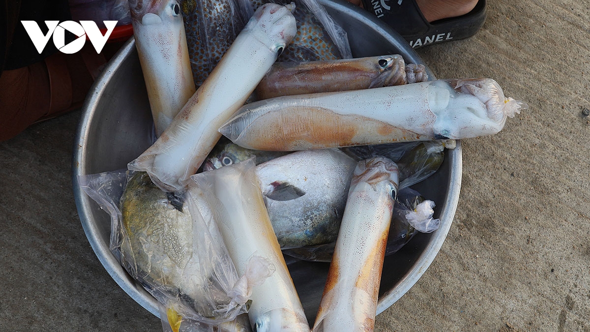 VOV.VN - Tại cảng Lý Sơn (Quảng Ngãi) buổi sớm, những con tàu nối đuôi nhau cập bến, khoang đầy ắp cá tôm sau một đêm bám biển. Trên bờ, người thân chờ sẵn, nhanh tay phụ chuyển hàng, tiếng cười nói xua tan cái mệt nhọc của chuyến đi dài.