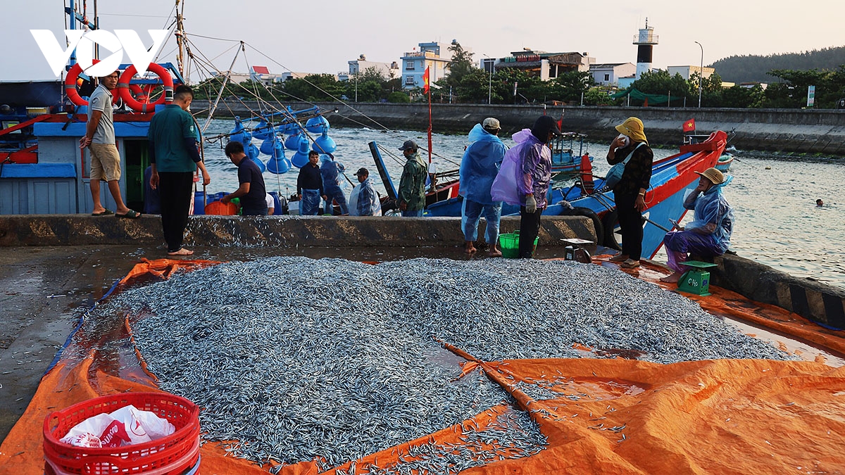 Ngư dân Lý Sơn trúng cá cơm.