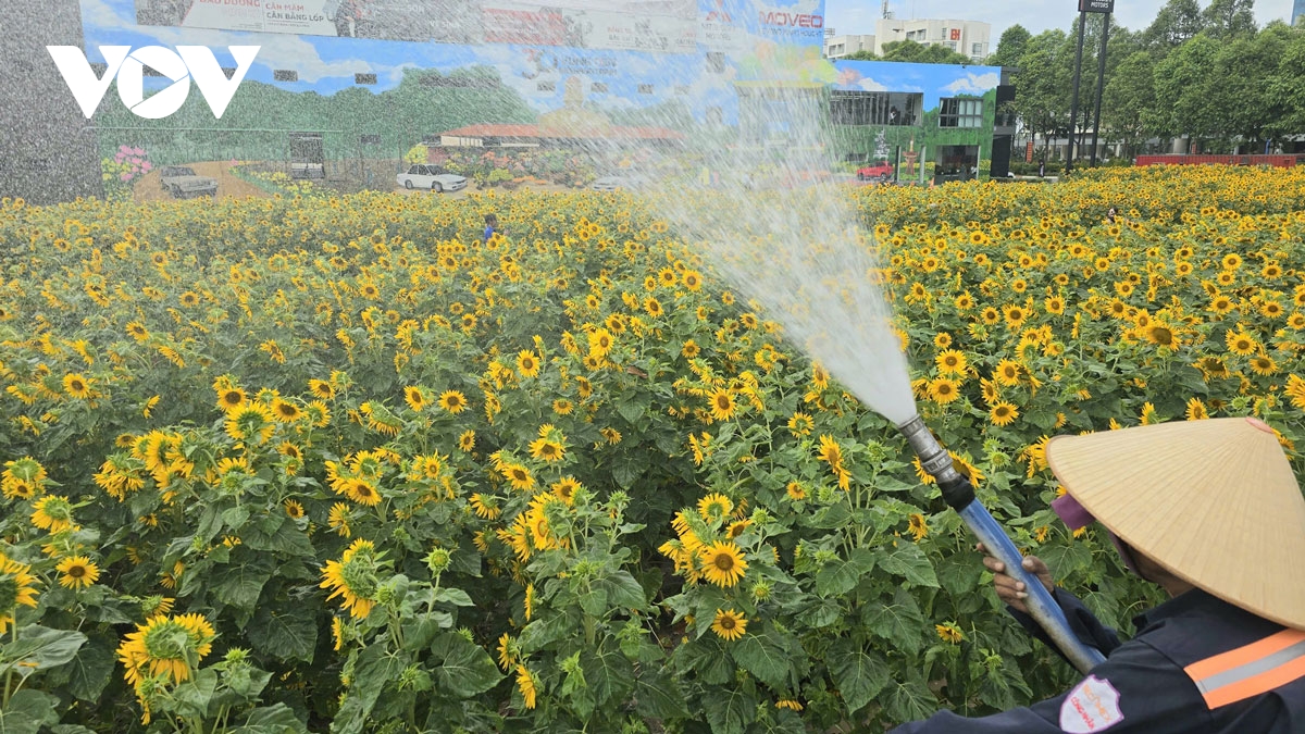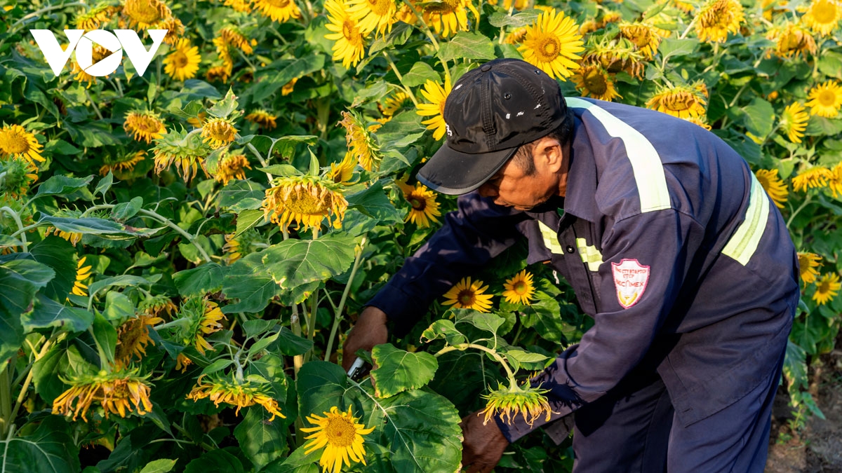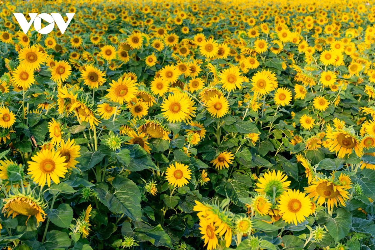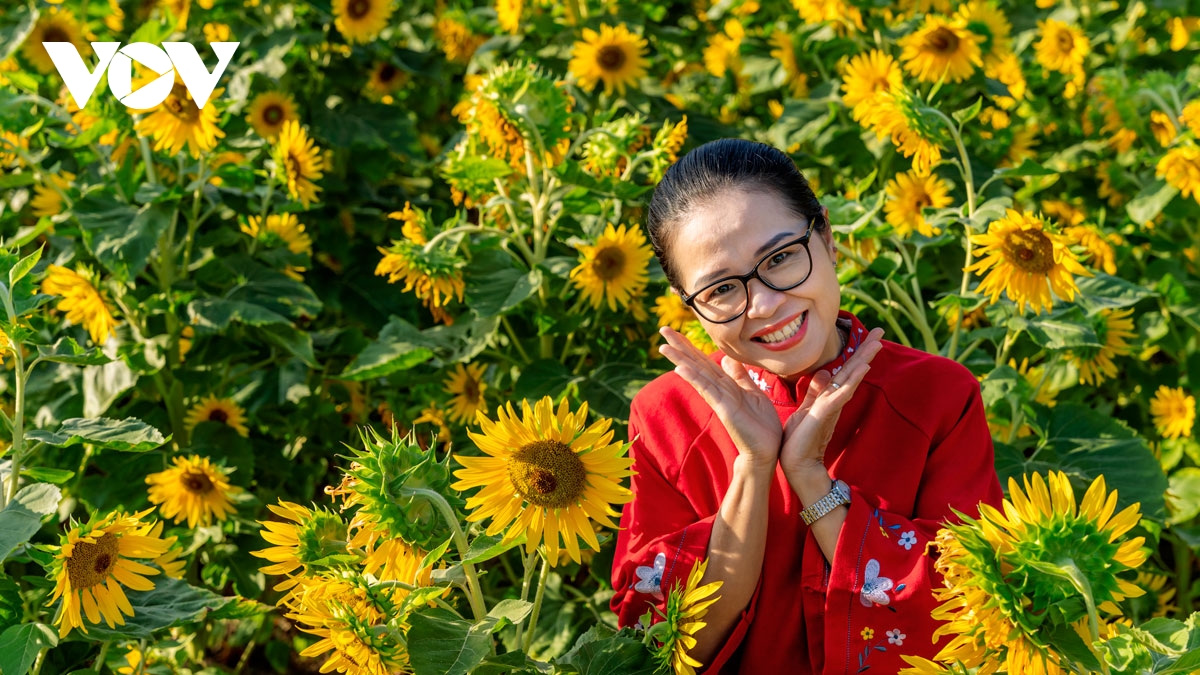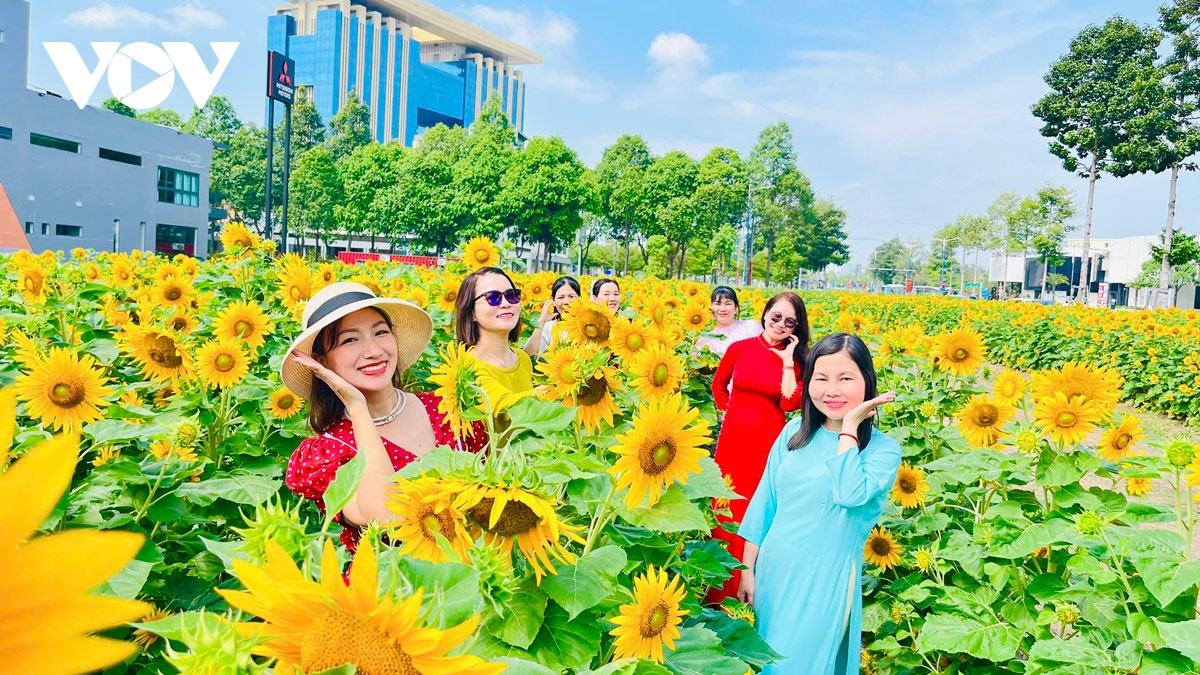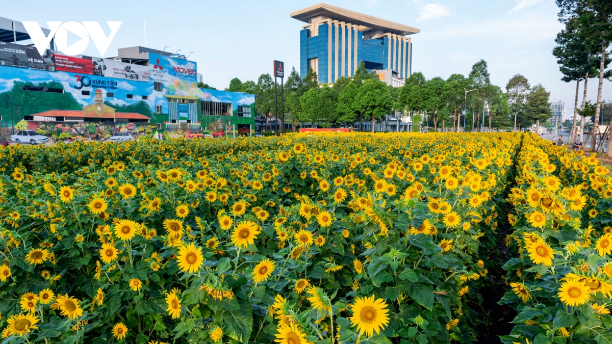 VOV.VN - Những ngày cuối năm, vườn hoa hướng dương ở thành phố mới Bình Dương trở thành điểm đến thu hút đông đảo người dân. Hàng triệu bông hoa vàng rực rỡ đua nhau khoe sắc, tạo nên một khung cảnh vô cùng lãng mạn và tươi tắn.