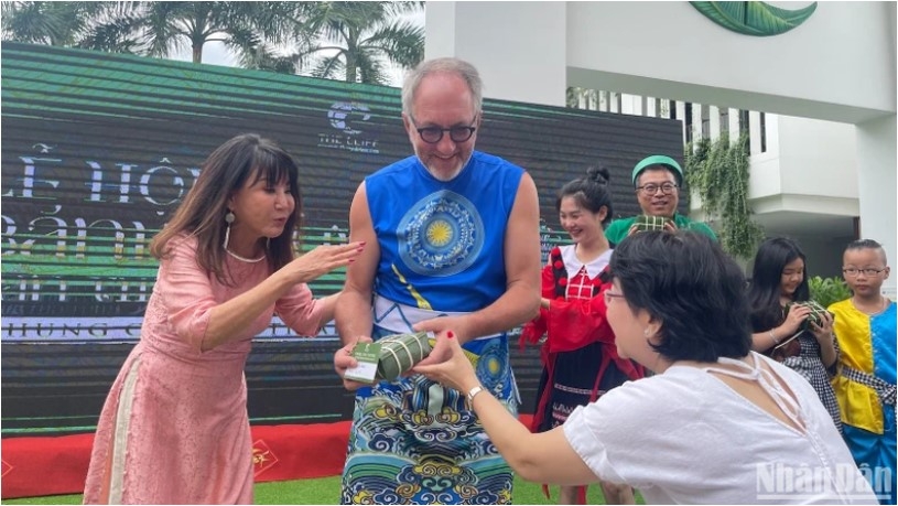 VOV.VN - A large number of foreign tourists enthusiastically took part in a contest of wrapping Bánh Chưng, a traditional Vietnamese dish during the Lunar New Year holiday (Tet), in Phan Thiet city of Binh Thuan province on January 18.