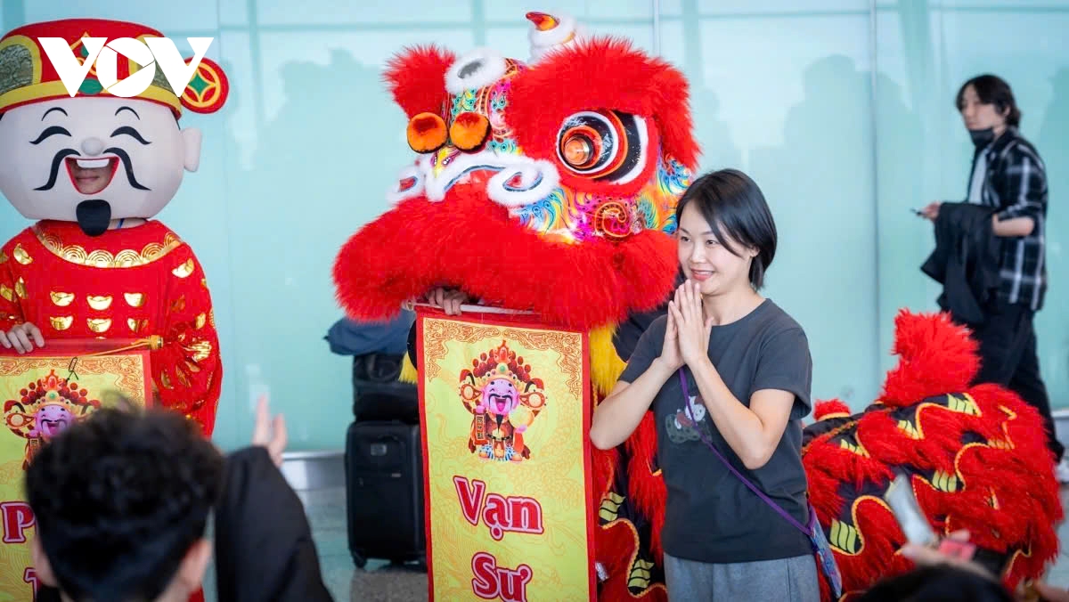 VOV.VN - As the Lunar New Year 2025 festival (Tet) is drawing near, many international travelers passing through Noi Bai International Airport are pleasantly surprised and delighted by colourful lion dances along with drum and gong performances at both the international and domestic terminals.