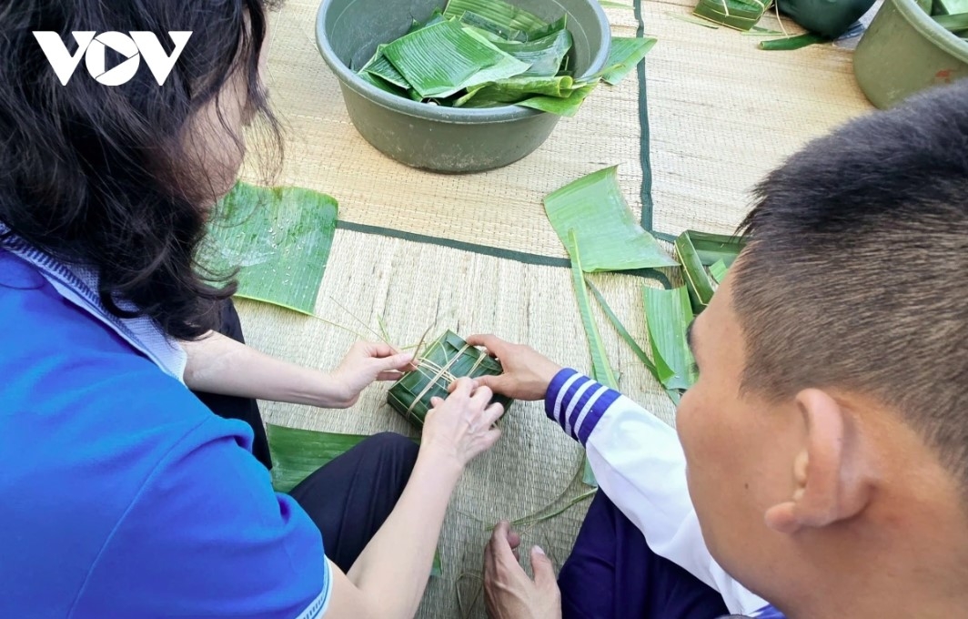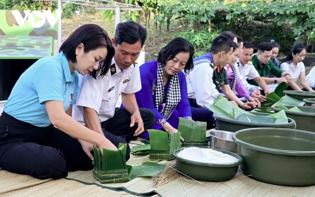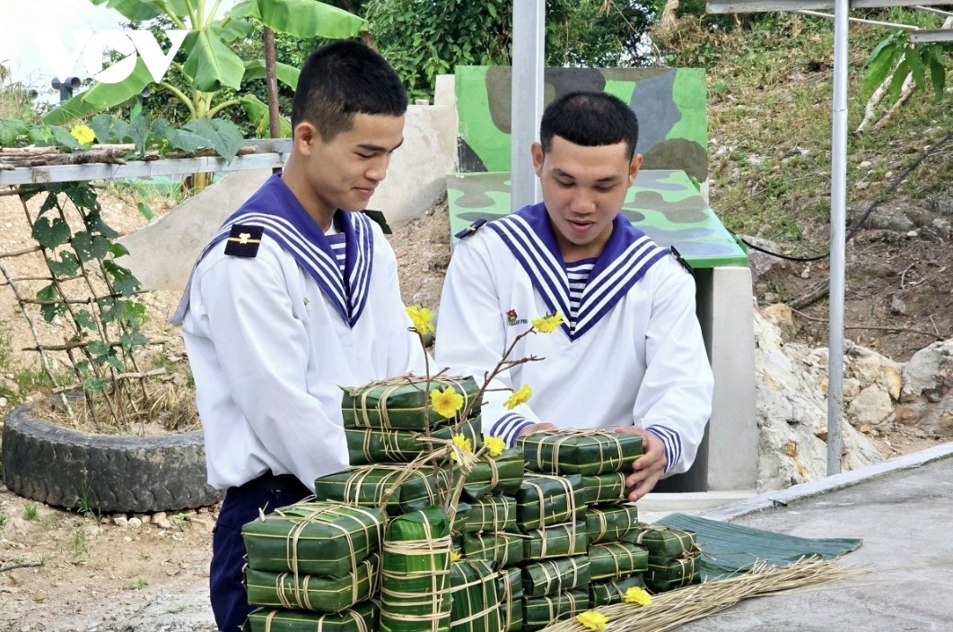 VOV.VN - Soldiers from the mainland and those based on Nam Du Archipelago in Kien Giang province have come together to wrap Banh Chung (square glutinous rice cake) in preparation for the Lunar New Year Festival, known locally as Tet.