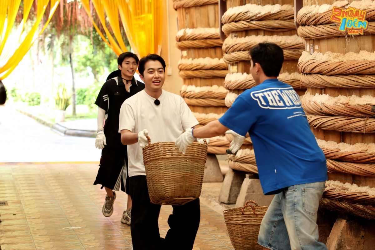 Khi chuyển sang công đoạn ủ chượp nước mắm, cả 3 anh em hóa thành “công nhân nước mắm” rất nhanh nhẹn khiêng vác những cần xé cá mang vào nhà ủ. Đầu dây chuyền là Cris Phan xong đến Cody và cuối cùng là HIEUTHUHAI.
