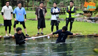Thế nhưng, đứng trước sự “hấp dẫn” của chỗ ngủ ngon tối nay cùng với sự cổ vũ nhiệt tình của đồng đội, Kiều Minh Tuấn như bơi “bằng cả tính mạng”, quạt tay quạt chân nhanh hết mức có thể để kịp về đích. Không phụ lòng mong đợi, chú Sáu bơi về đích thành công, giúp phần thi bơi tiếp sức của cả đội hoàn thành kịp trước đề bài được giao, cả đội giành được suất ngủ sướng tối nay.