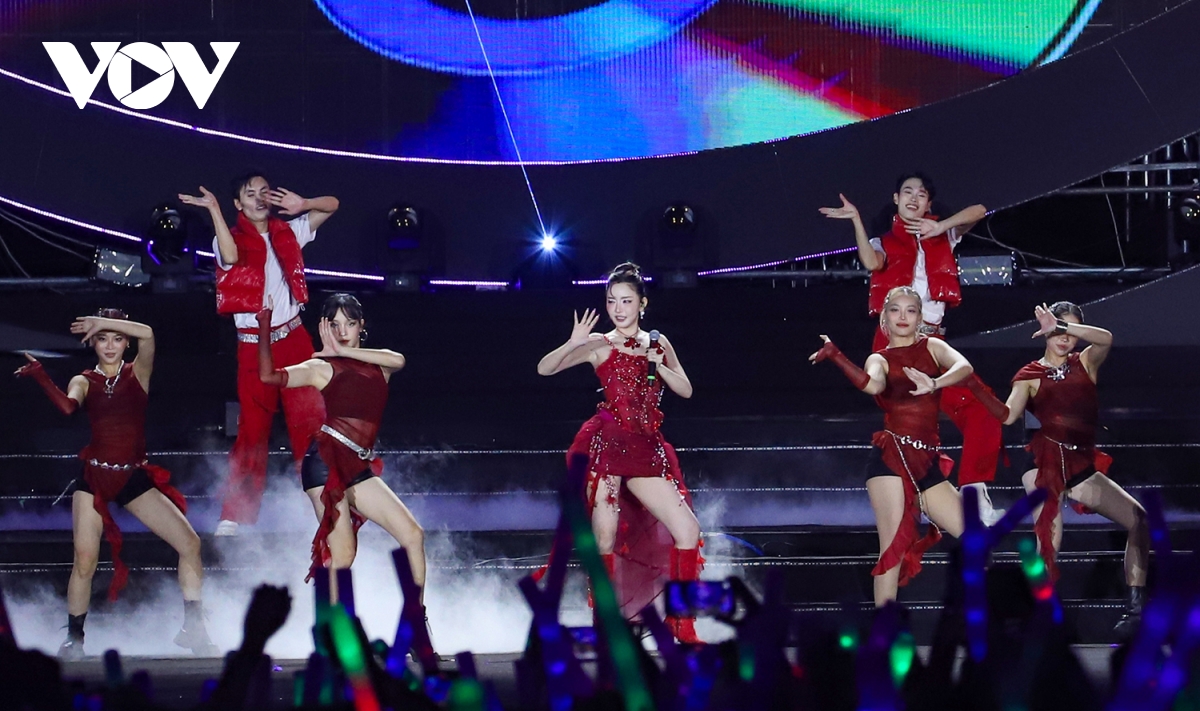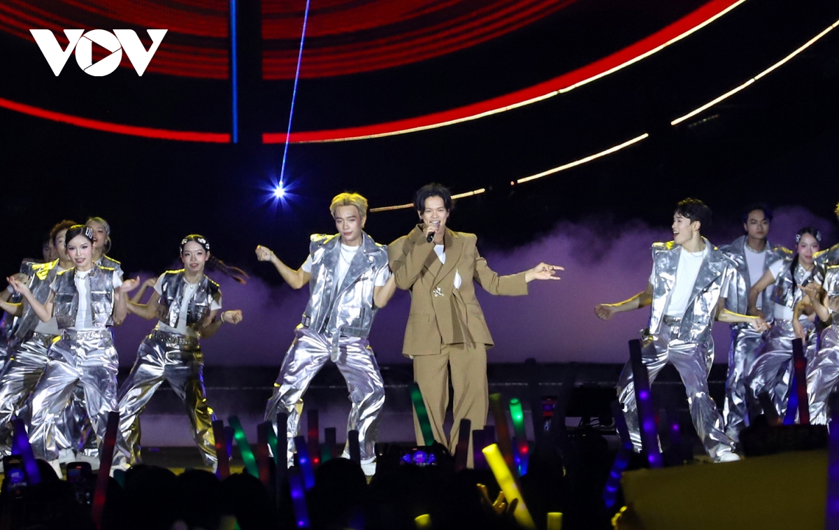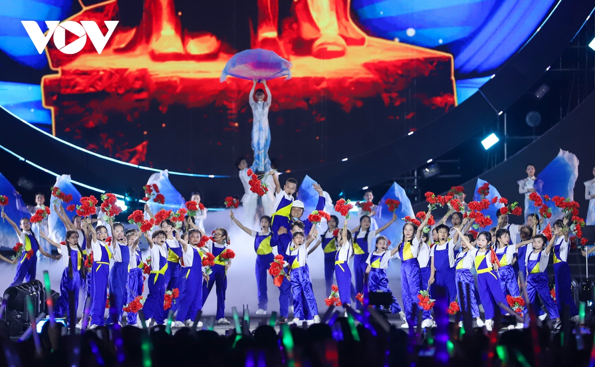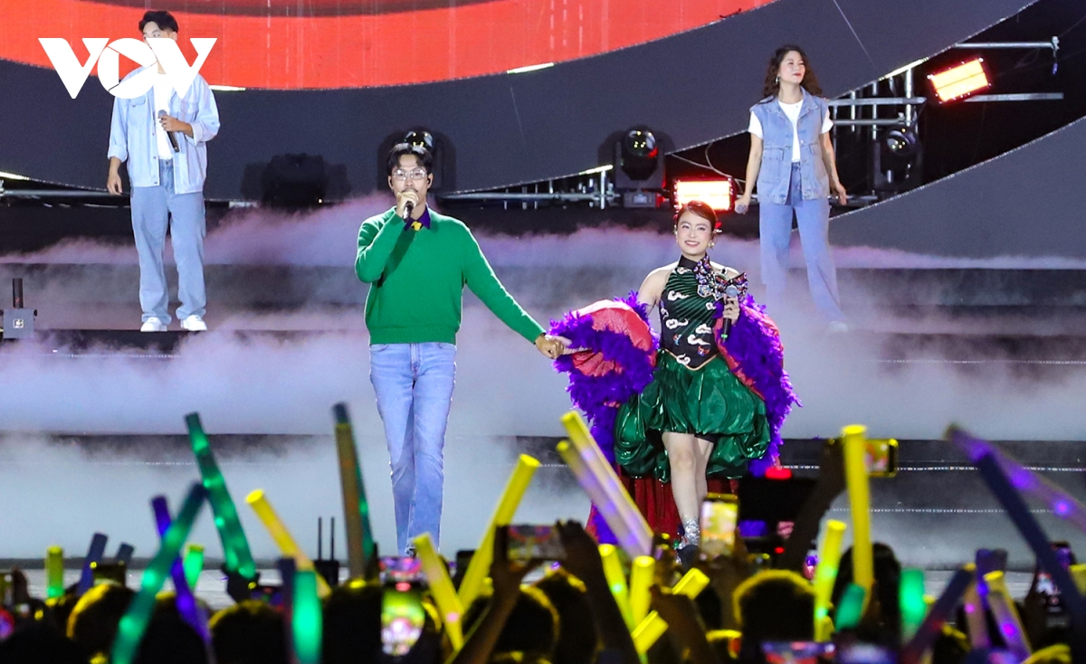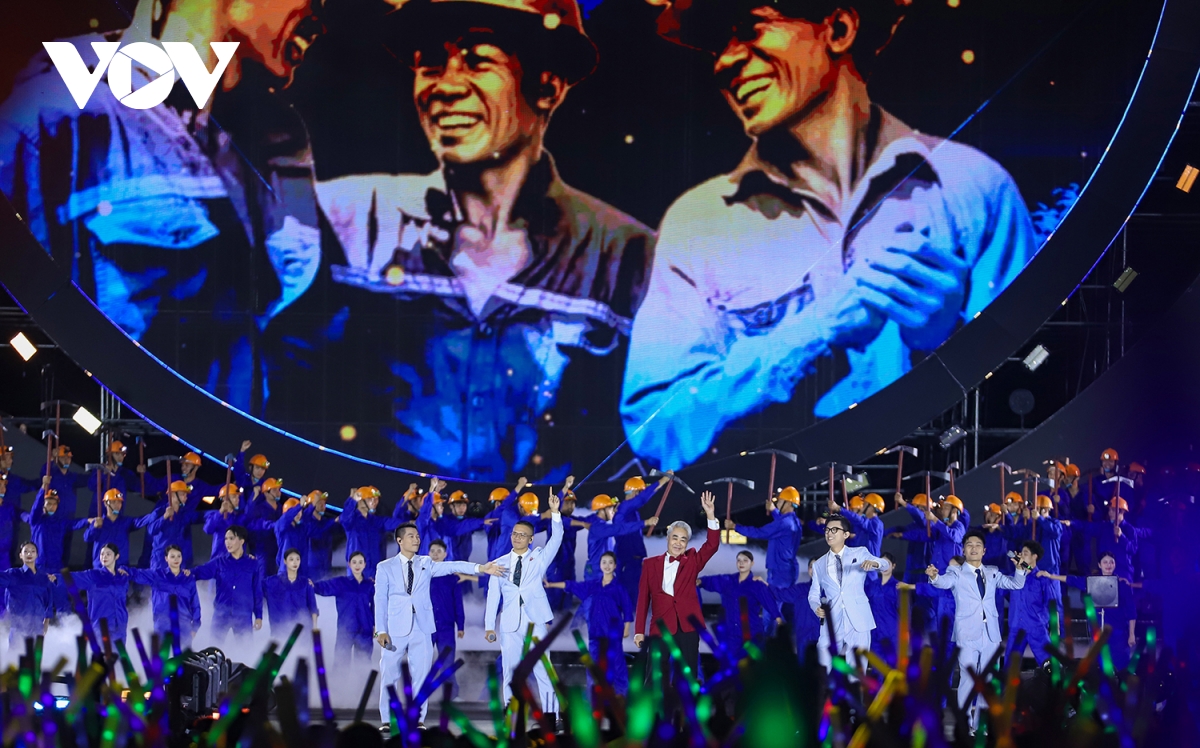 Dàn sao tên tuổi “đốt cháy” sân khấu bằng những ca khúc hiện đại, thể hiện nhịp sống và khát vọng vươn xa. Hoàng Thuỳ Linh mở đầu bằng bản hit See tình và chia sẻ: “Đây là giây phút Linh mong chờ lâu lắm rồi. Mỗi lần trở về Quảng Ninh là như trở về nhà, cùng hát với những người thân của mình”.