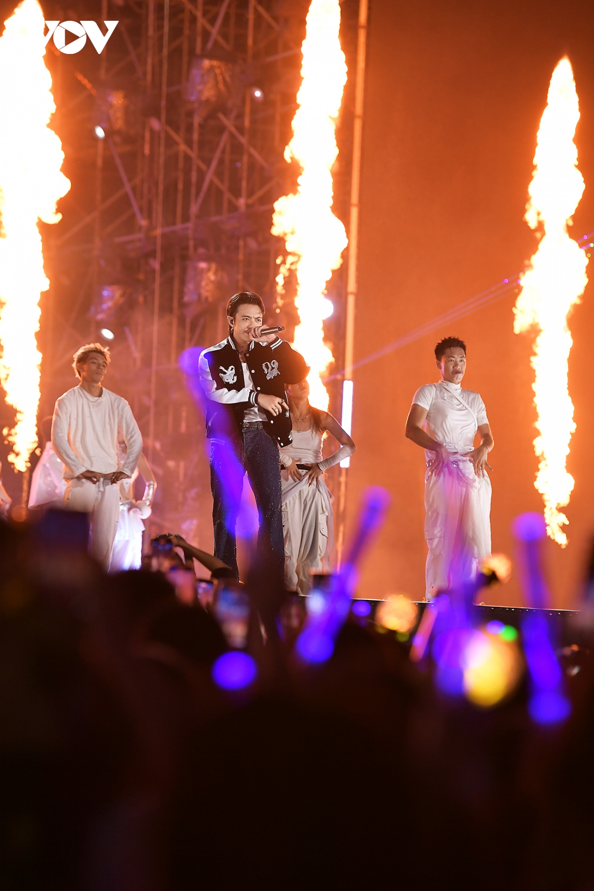 Đây là một trong những đại nhạc hội được mong chờ nhất năm với quy mô hoành tráng, hệ thống âm thanh, ánh sáng chuẩn quốc tế và sân khấu được đầu tư công phu. Chương trình quy tụ dàn nghệ sĩ quốc tế đình đám như DJ Snake, J Balvin, The Kid LAROI, cùng những gương mặt V-pop nổi bật: Soobin, Hòa Minzy, tlinh, (S)TRONG Trọng Hiếu… Tất cả đã mang đến những màn trình diễn bùng nổ, khiến khán giả đứng ngồi không yên. Ảnh: BTC