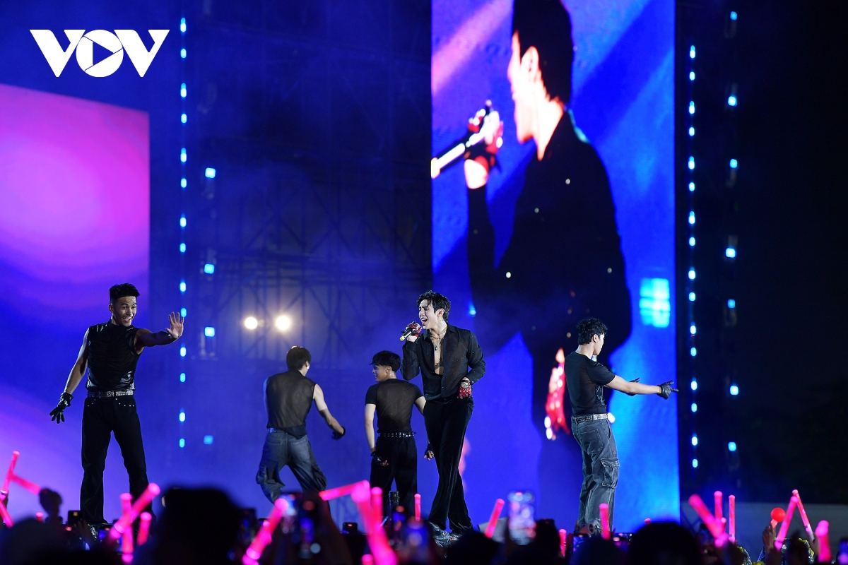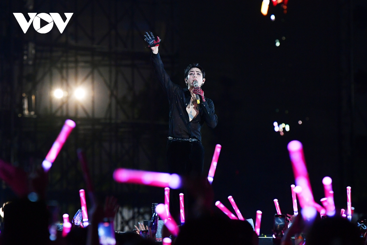 Từng giai điệu cất lên, hàng chục nghìn khán giả cùng hòa nhịp, biến Trung tâm Triển lãm Việt Nam thành “chảo lửa”. Sự quyến rũ đầy nam tính pha chút nổi loạn, cộng với phong thái sexy khó cưỡng, khiến khán giả liên tục gọi tên anh.