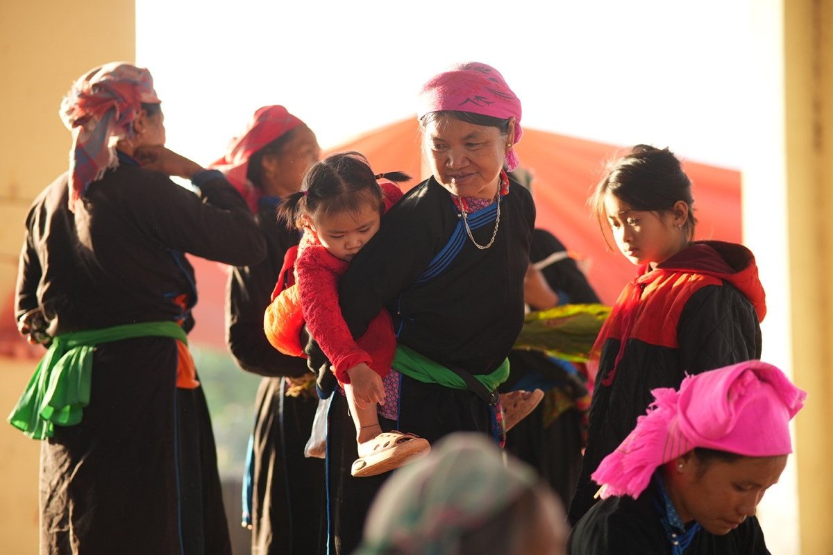 Trái ngược với hình ảnh “lấm lem” nơi đồng ruộng, một điểm nhấn đầy bất ngờ khác đến từ Ngọc Thanh Tâm – cô gái duy nhất của Gia đình Haha – khi hóa thân thành một cô gái dân tộc Tày trong bộ trang phục truyền thống do chị Thông cho mượn. Xuất hiện tại phiên chợ vùng cao cùng Út Khánh và chị Thông, Tư Tâm mang đến hình ảnh vừa lạ lẫm vừa thân thương, toát lên vẻ dịu dàng, duyên dáng trong không gian văn hóa đặc sắc của vùng Tây Bắc.
