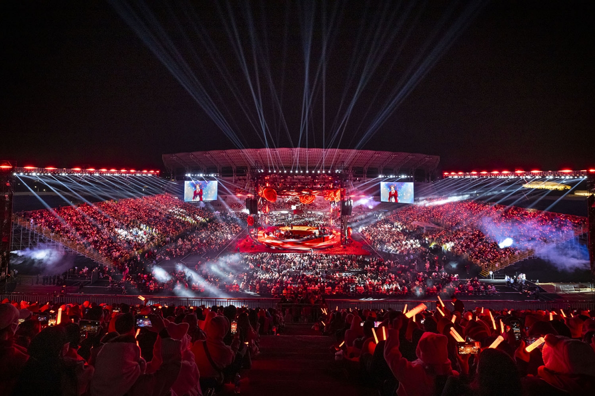 Không chỉ nằm ở ý niệm "hoàn thiện" của hành trình, "The Rose" còn gây ấn tượng mạnh bởi cách ê-kíp tạo dựng một không gian trình diễn hoàn toàn mới. Tại TP.HCM, sân khấu "Sketch A Rose" từng tạo dấu ấn bằng hình ảnh đóa hồng khổng lồ đặt ở trung tâm, trở thành biểu tượng thị giác xuyên suốt đêm nhạc. Tuy nhiên, với "The Rose" tại Đà Lạt, ê-kíp không lặp lại công thức ấy mà lựa chọn nâng biểu tượng hoa hồng lên một tầm vóc khác. Điểm nhấn nổi bật nhất là sân khấu xoay 360 độ với đường kính 25m, đi kèm khu vực backstage âm dưới sân khấu và hệ thống bàn xoay hiện đại bậc nhất. Đây cũng là lần đầu tiên kỹ thuật này xuất hiện trong một đêm diễn của Hà Anh Tuấn, mở rộng không gian và phá bỏ trật tự một chiều giữa nghệ sĩ và người xem.