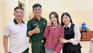 Chuyến thăm đơn vị còn trở nên đặc biệt khi Hòa Minzy đưa con trai – bé Bo – đi cùng. Trong video được chia sẻ, Đại úy Thăng Văn Cương bế bé Bo dạo quanh khuôn viên đơn vị, cậu bé tỏ ra thích thú và quấn quýt bên “bố Cương”. Dòng trạng thái đi kèm gây chú ý: “Con được lên đơn vị thăm bố Cương, con rất thích ở đơn vị bố”.