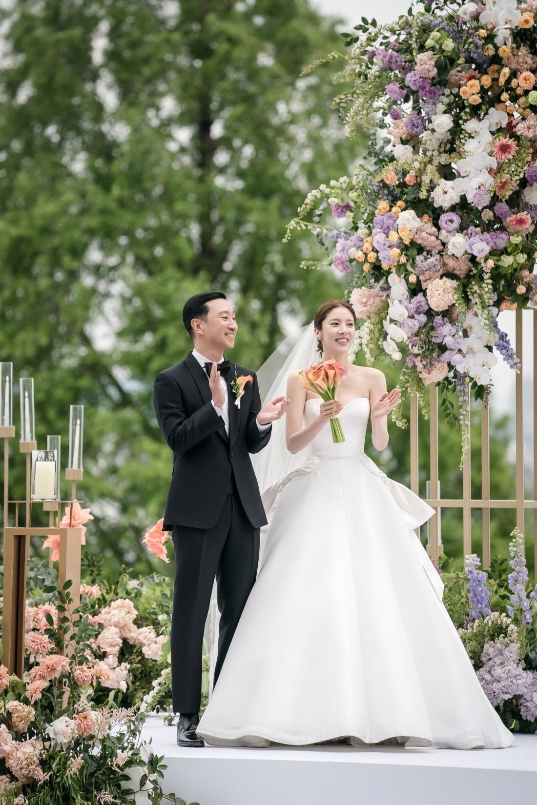 Cặp đôi chính thức về chung một nhà vào ngày 13/5 vừa qua. Đám cưới thu hút sự chú ý của công chúng khi có sự tham dự của dàn sao Hàn đình đám. Phát thanh viên thể thao Lee Dong Geun của KBS N chịu trách nhiệm dẫn dắt buổi lễ, còn PSY, Jo Kwon và Im Seulong (2AM) hát chúc mừng cặp đôi. Người mẫu kiêm diễn viên Kang Seung Hyun là người bắt được hoa trong đám cưới.
