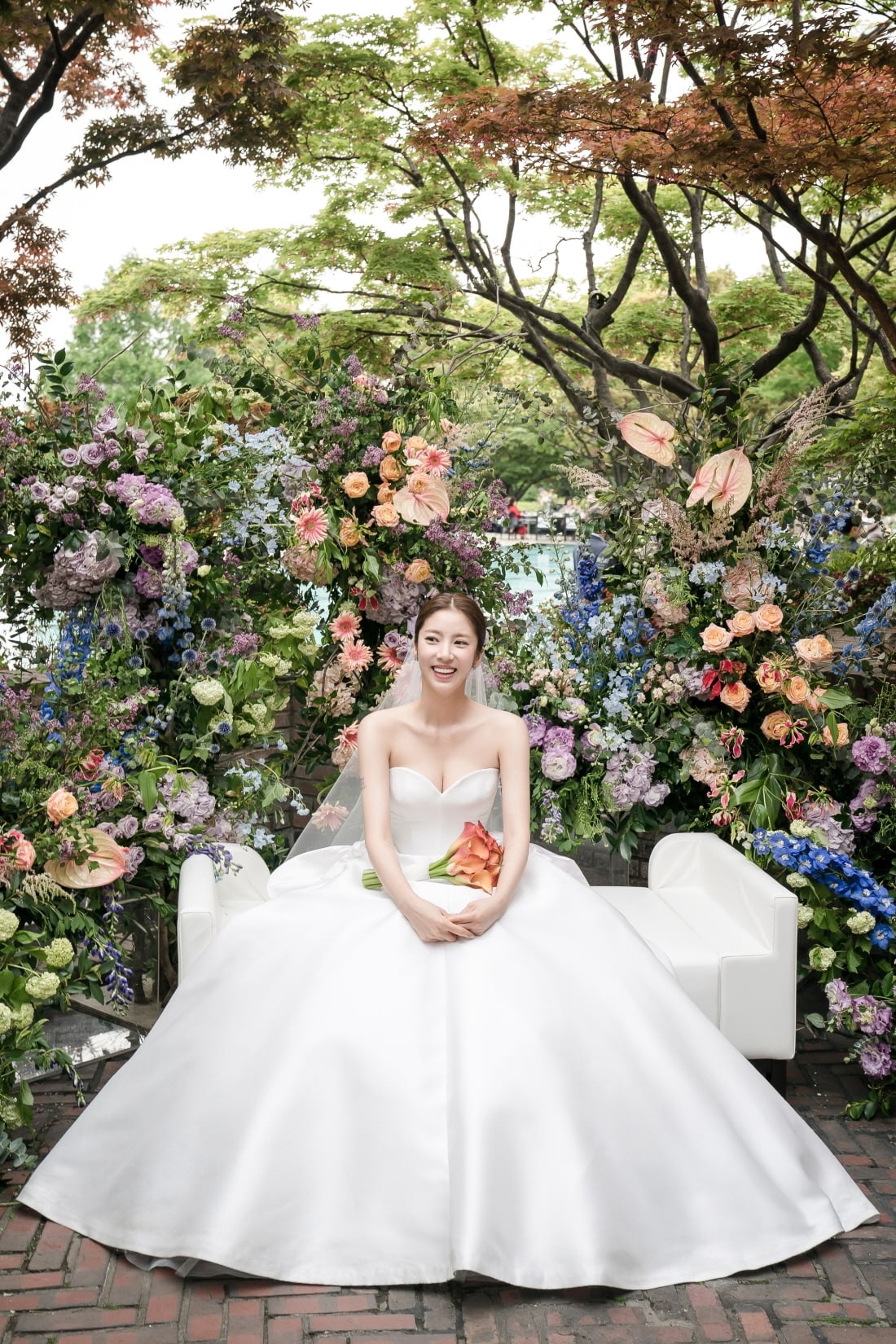 Trong những bức ảnh được công bố, cô dâu Son Dam Bi khoe sắc trong thiết kế váy cưới trễ vai, tôn lên vóc dáng đáng mơ ước. Chú rể Lee Kyou Hyuk lịch lãm với hai thiết kế suit trắng, đen. Cặp đôi nở nụ cười rạng rỡ, hạnh phúc trong ngày trọng đại.