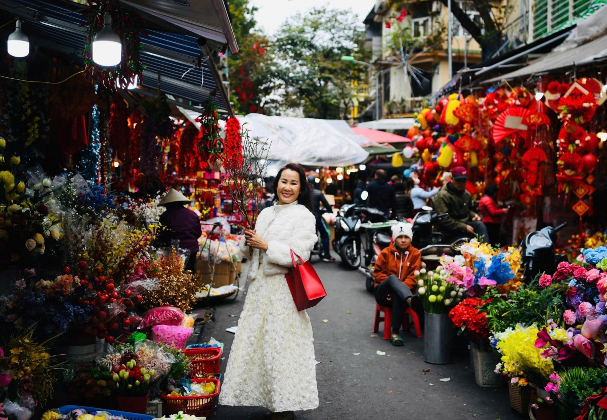 Dành thời gian cùng mẹ đi chợ hoa, sắm Tết luôn là thói quen không thể thiếu của Giáng Son. Chị yêu không khí tất bật ở các chợ truyền thống vào những ngày cuối năm, nơi mọi người đều hối hả chuẩn bị mâm cỗ chu đáo. Với chị, sự rộn ràng ấy chính là hơi thở của mùa xuân, làm cho Tết thêm ý nghĩa.