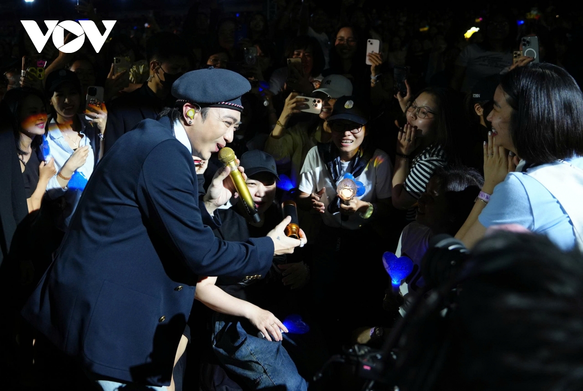 Tự Long tạm khép lại màn trình diễn của mình tại concert Trạm Yêu 4 với màn đùa dí dỏm về tuổi tác và hỏi có fan nào có bố 54 tuổi như mình để "gả" Soobin cho khiến cả sân vận động rộn vang tiếng cười.