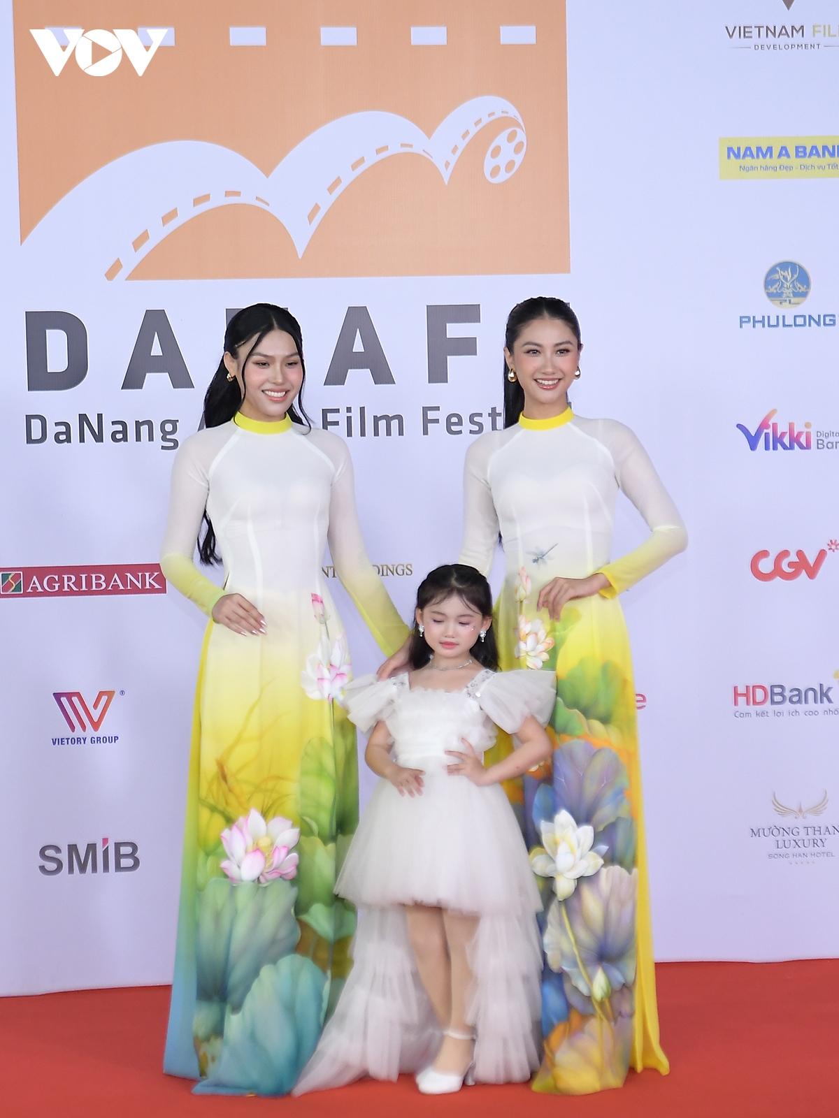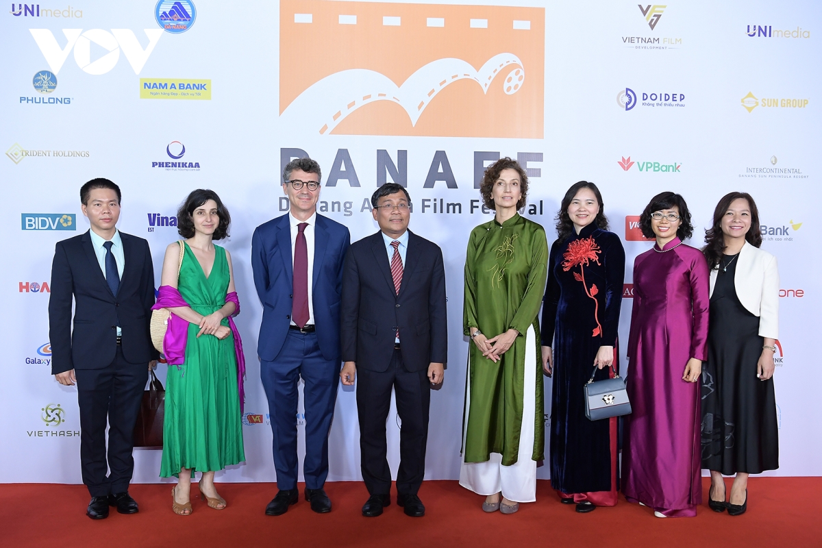 Đoàn phim "Mưa trên cánh bướm" xuất hiện trên thảm đỏ DANAFF. Năm nay, phim "Mưa trên cánh bướm" của đạo diễn Dương Diệu Linh là đại diện Việt Nam duy nhất tranh tài ở hạng mục phim châu Á dự thi.