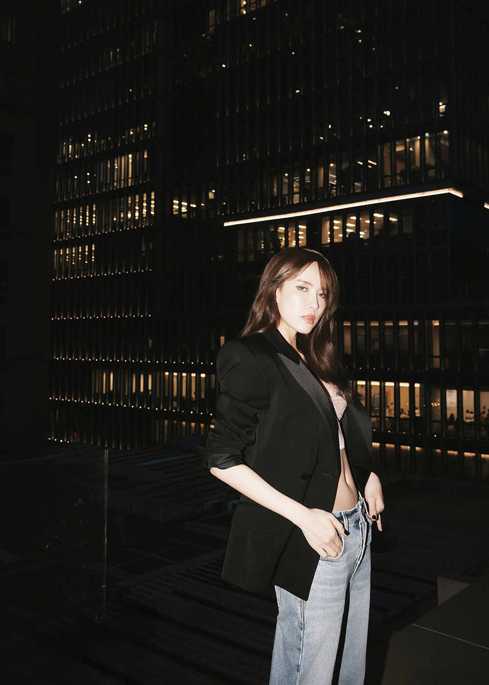 Giữa không gian rộng mở với ánh sáng tự nhiên và kiến trúc tối giản, nữ ca sĩ xuất hiện đầy cuốn hút. Khi là một quý cô hiện đại trong blazer đen, bralette và quần jean năng động, lúc lại thanh lịch với sơ mi trắng oversize, cà vạt, blazer trung tính và giày cao gót. Cô cũng thể hiện sự nữ tính qua bộ trang phục gam nâu trầm gồm sơ mi, chân váy ngang gối và blazer đồng màu. Những món phụ kiện như túi xách nhỏ, giày mũi nhọn hay thắt lưng bản nhỏ được phối hợp khéo léo để tạo điểm nhấn mà không lấn át tổng thể.