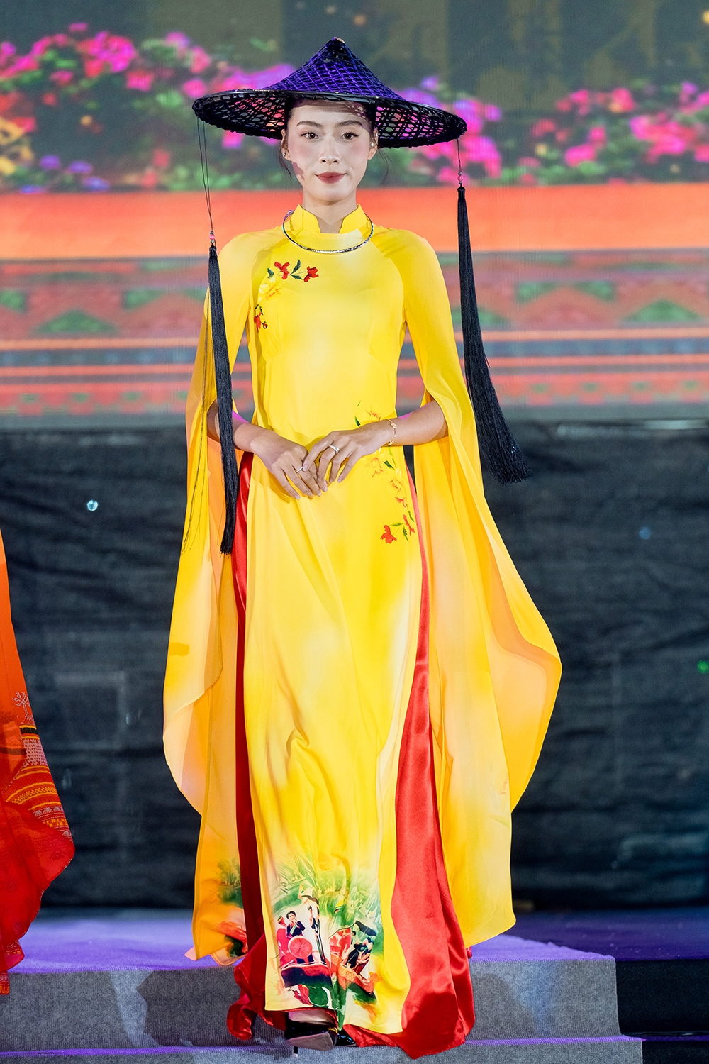 Giữa không gian rực rỡ của lễ hội, những thiết kế trong “Hương sắc Việt Nam” tạo nên một bản hòa ca giữa truyền thống và sáng tạo, giữa di sản văn hóa phi vật thể và ngôn ngữ thời trang đương đại. Lấy cảm hứng từ nghệ thuật thêu ren tinh xảo của làng nghề, từ kỹ thuật dệt thổ cẩm của đồng bào Tày, Nùng, Thái, Dao, Vũ Thảo Giang đã thổi hồn vào từng sợi chỉ, từng hoa văn – nơi quá khứ và hiện tại giao hòa trong tinh thần tân thời.