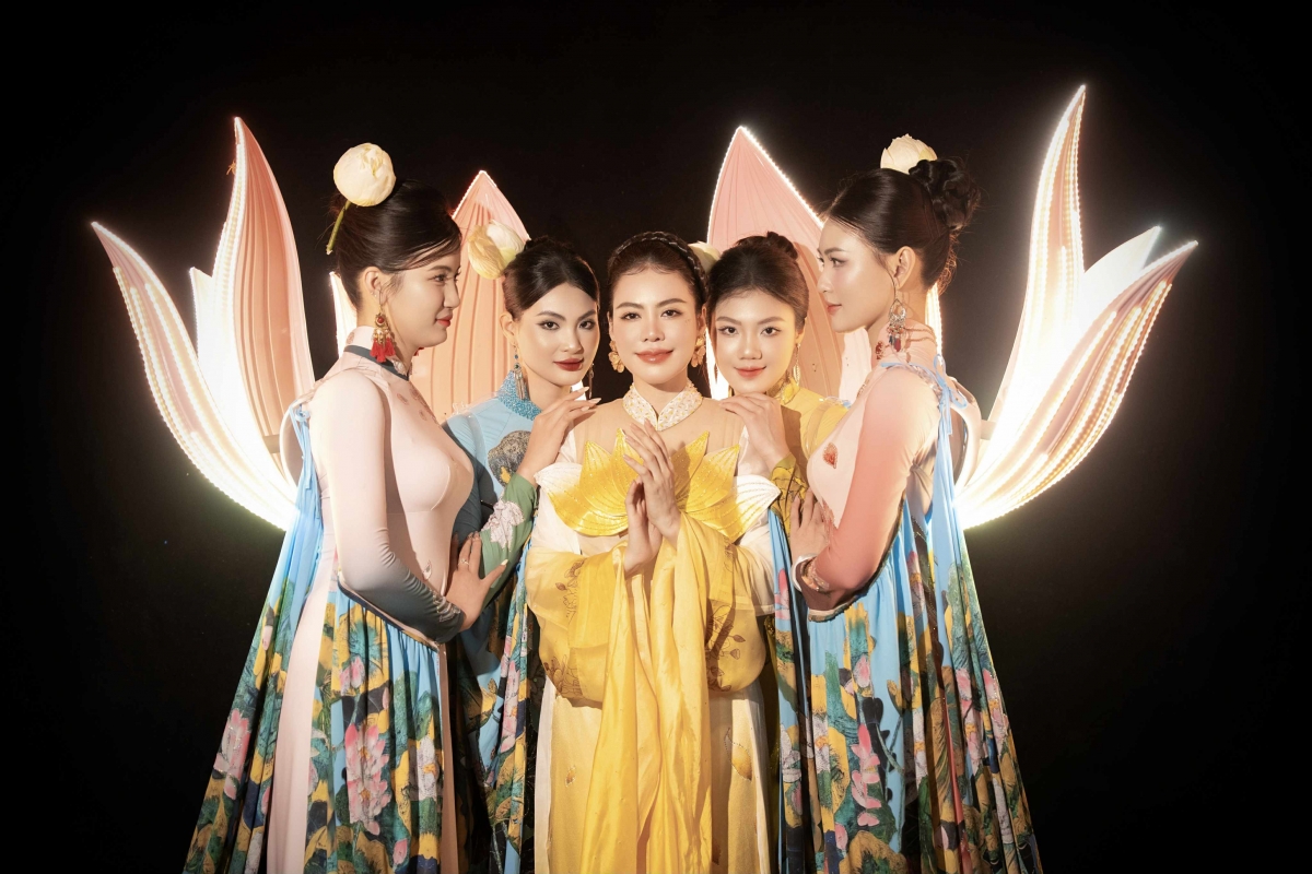 Chia sẻ bộ sưu tập có tên gọi “Hương Việt”, NTK Thoa Trần bày tỏ: Áo dài không chỉ là trang phục mà là di sản văn hóa phi vật thể, biểu tượng của nữ tính, thanh lịch và khí phách Việt Nam qua mọi thời kỳ. Khi kết hợp với hoa sen – loài hoa thiêng trong tâm linh, thi ca và mỹ thuật – áo dài trở thành ngôn ngữ của trí tuệ, nhân cách và hòa bình. Mỗi thiết kế trong bộ sưu tập mang sắc màu tượng trưng cho ngũ hành – ngũ đức – ngũ phẩm, tạo nên bản hòa âm thị giác đầy ý nghĩa nhân sinh.