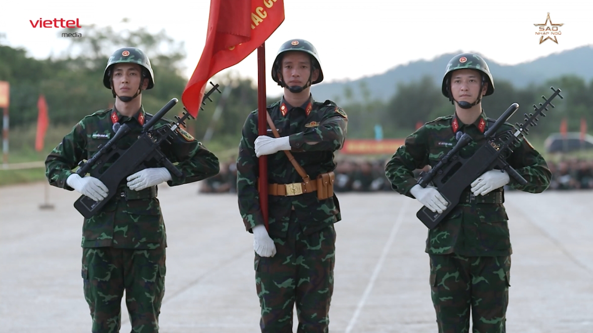 Trong video highlight tập 2 được đăng tối 11/8, thượng úy Hiệp cùng hai nhân vật trải nghiệm là diễn viên Bình An và Huỳnh Anh đứng trong tổ Quốc kỳ, nghiêm trang thực hiện nghi thức rước cờ. Phía sau là đội hình duyệt binh của Lữ đoàn Tác chiến điện tử, hàng trăm chiến sĩ bước đều, khí thế hùng dũng.