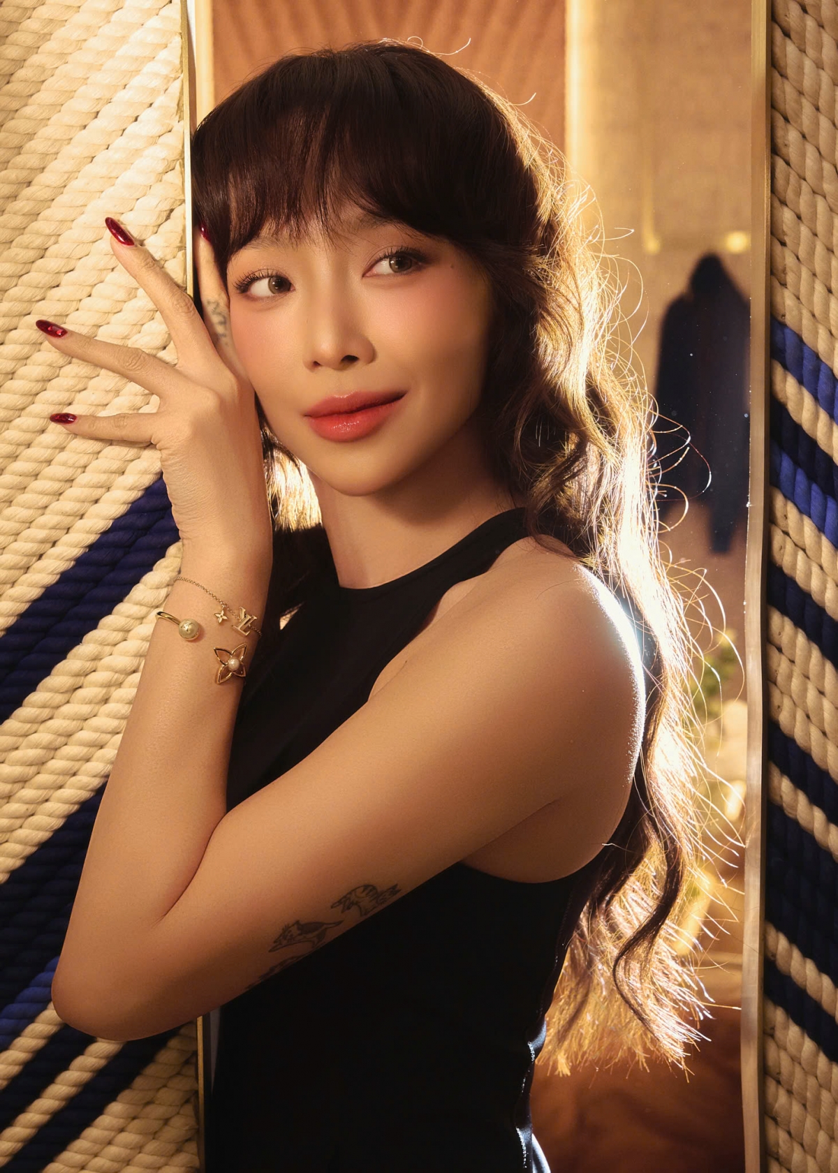 Diện trang phục tông đen với phom dáng ôm gọn, phần cổ yếm tinh tế cùng chân váy xếp lớp nhẹ nhàng, Tóc Tiên ghi điểm bởi sự tiết chế vừa đủ. Kết hợp cùng lớp trang điểm trong trẻo, làn da căng bóng và mái tóc xoăn buông tự nhiên, tổng thể mang đến cảm giác bay bổng nhưng vẫn phảng phất nét kiêu kỳ. Đây được xem là bước chuyển rõ rệt của nữ ca sĩ, từ hình tượng “cool girl” nổi loạn sang vẻ đẹp mềm mại, trưởng thành hơn.