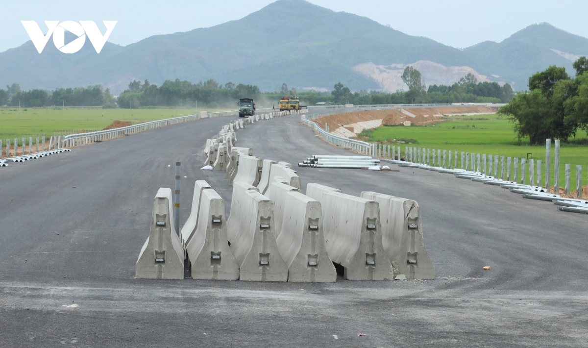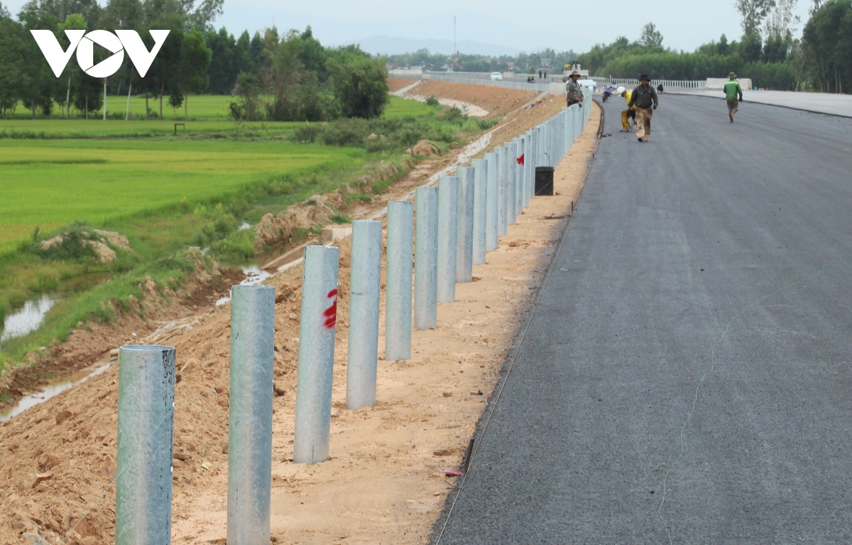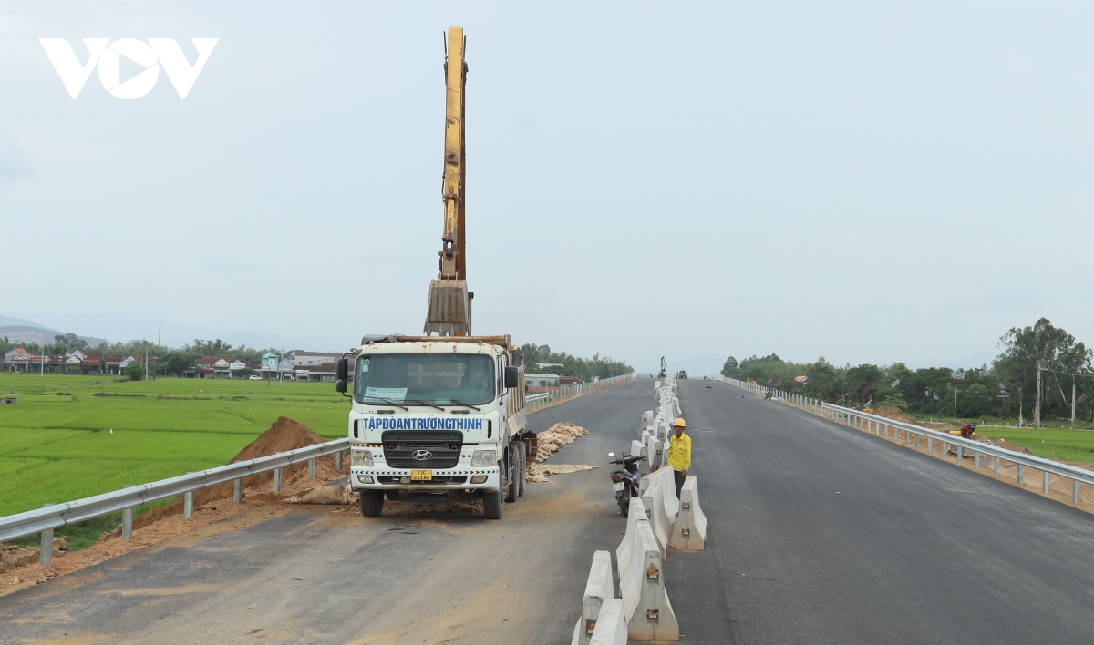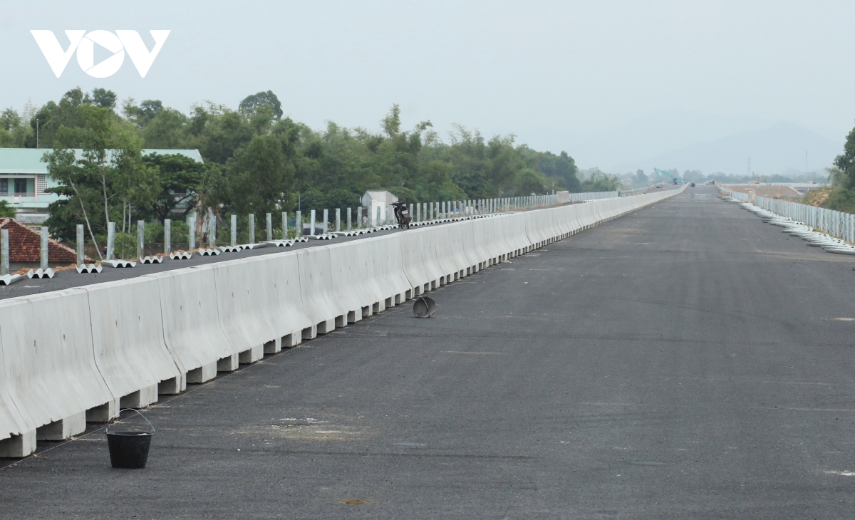 Một số đoạn do nhà thầu Sơn Hải thi công đã hoàn thành nền đường và sơn vạch kẻ đường.