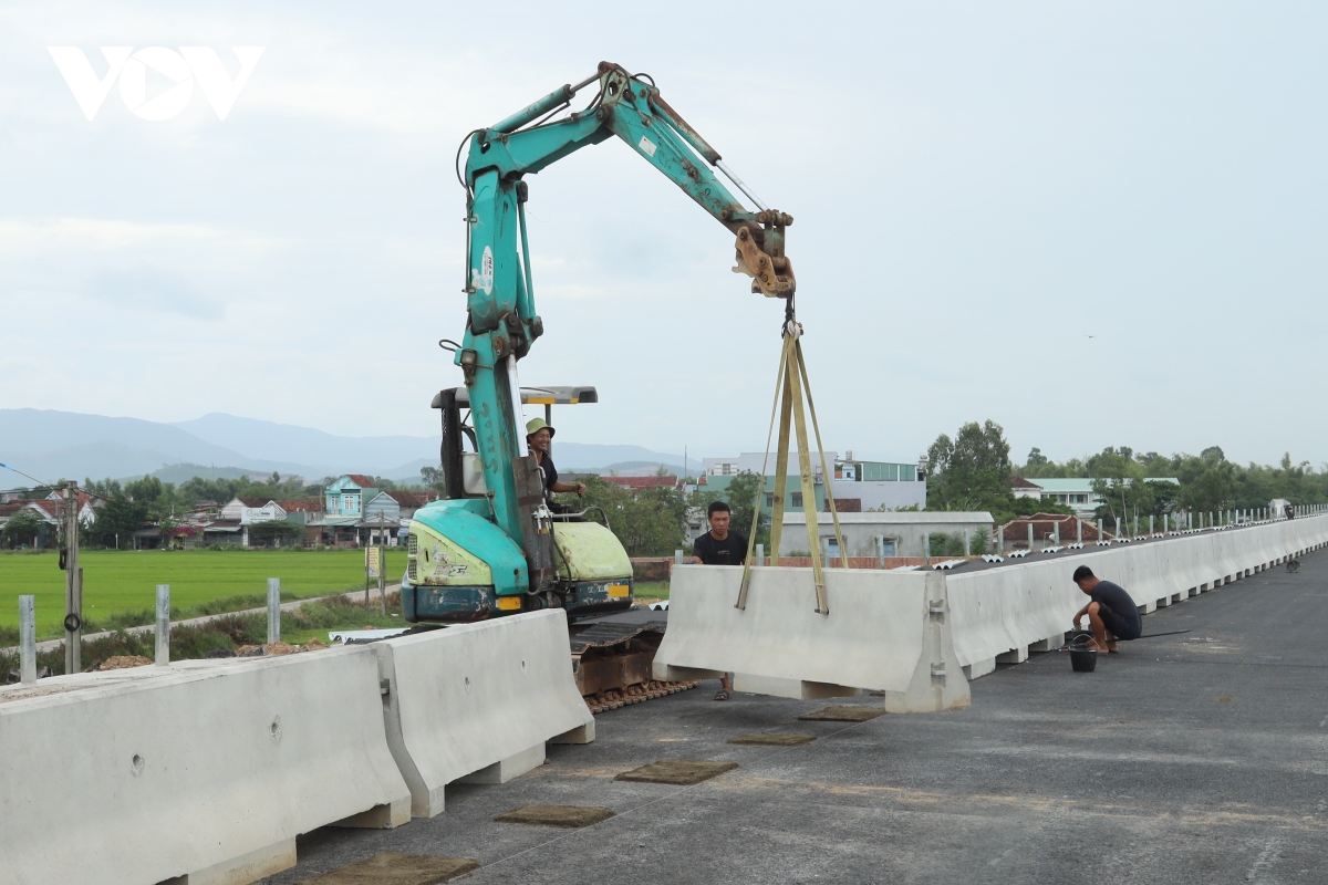 Lắp dải phân cách trên cao tốc Hoài Nhơn - Quy Nhơn.